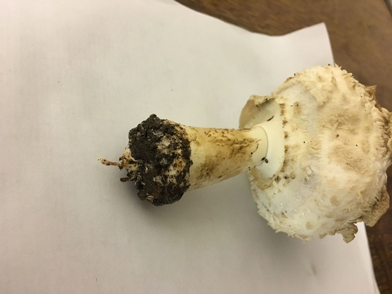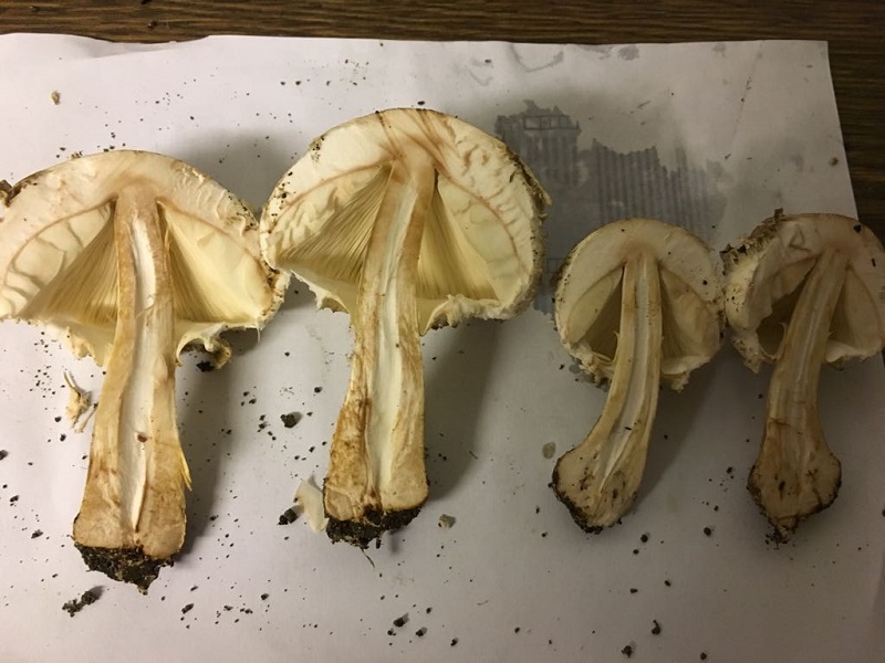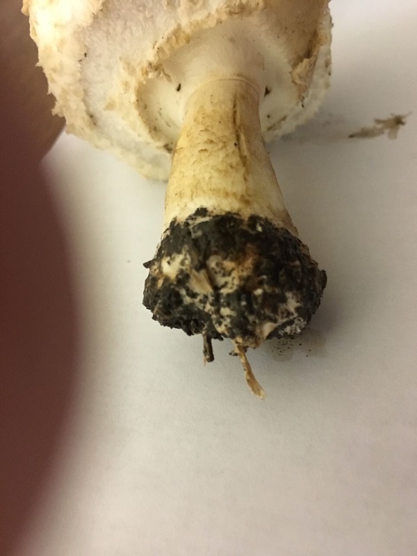 Wenn ich das richtig verstanden habe ist wohl die Knolle und Stielbasis interessant. In dem von Pablo verlinkten Beitrag kann man das in dem Video recht gut erkennen, bei meinen Pilzen finde ich ist das schwierig zu sehen. Ich habe die beiden kleineren Exemplare, von denen ich die Knollenbilder gemacht habe, mal durchgeschnitten. Ich finde es aber nach wie vor nicht eindeutig.