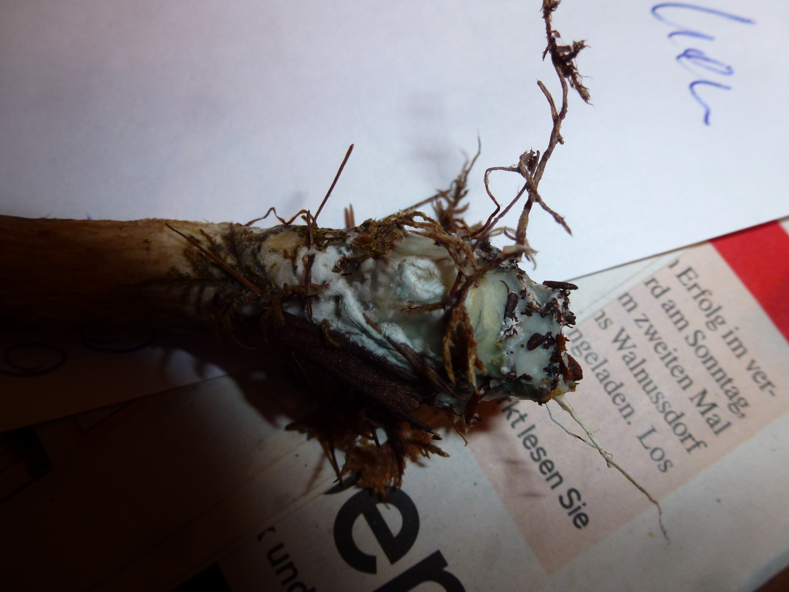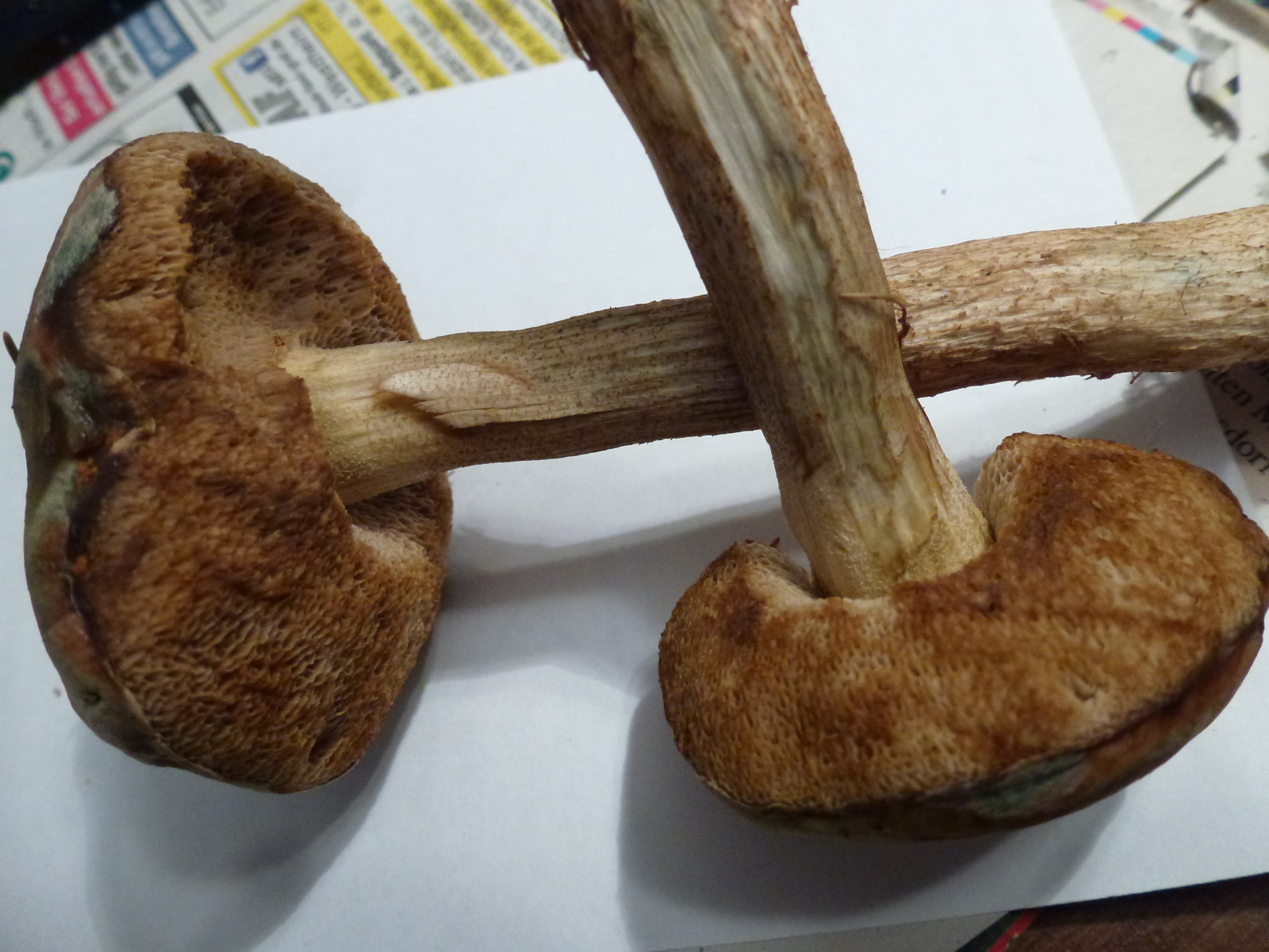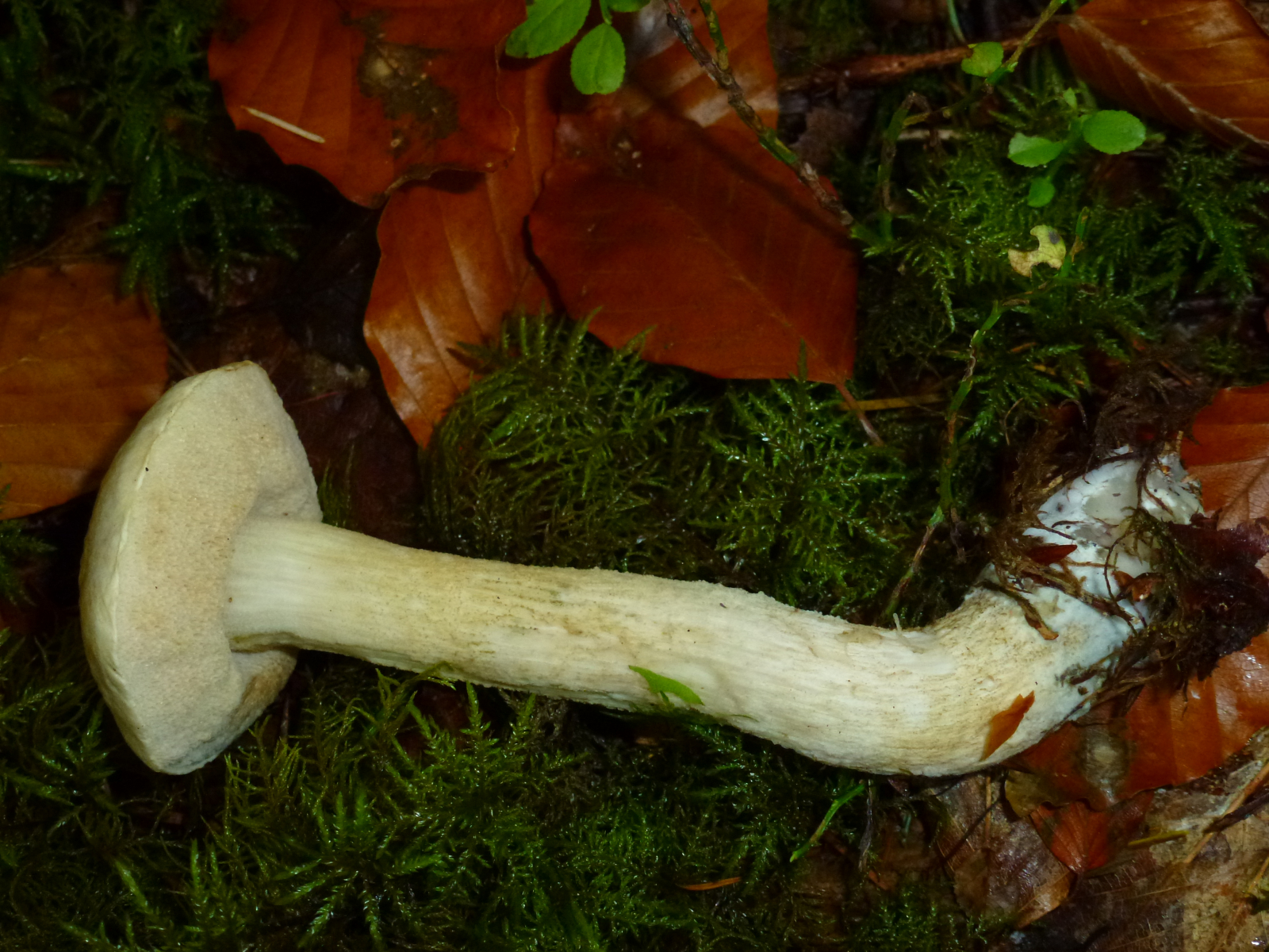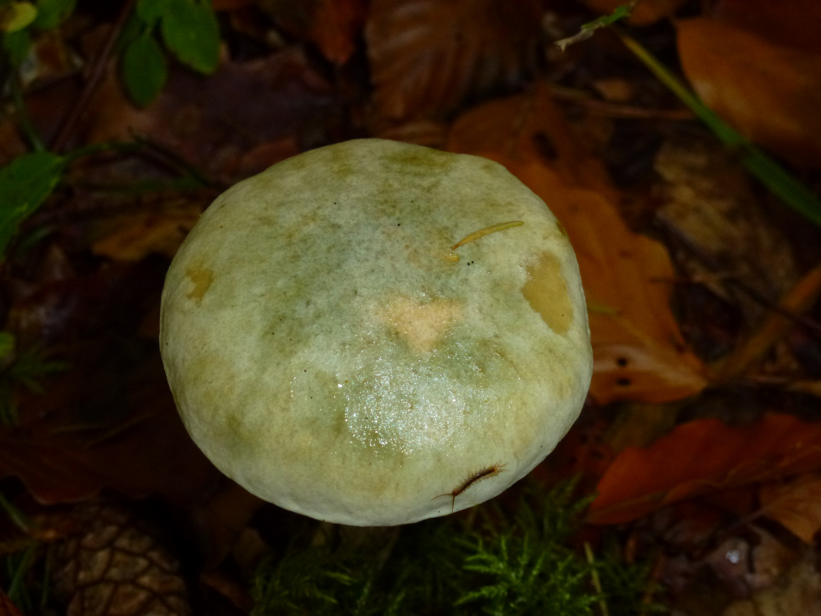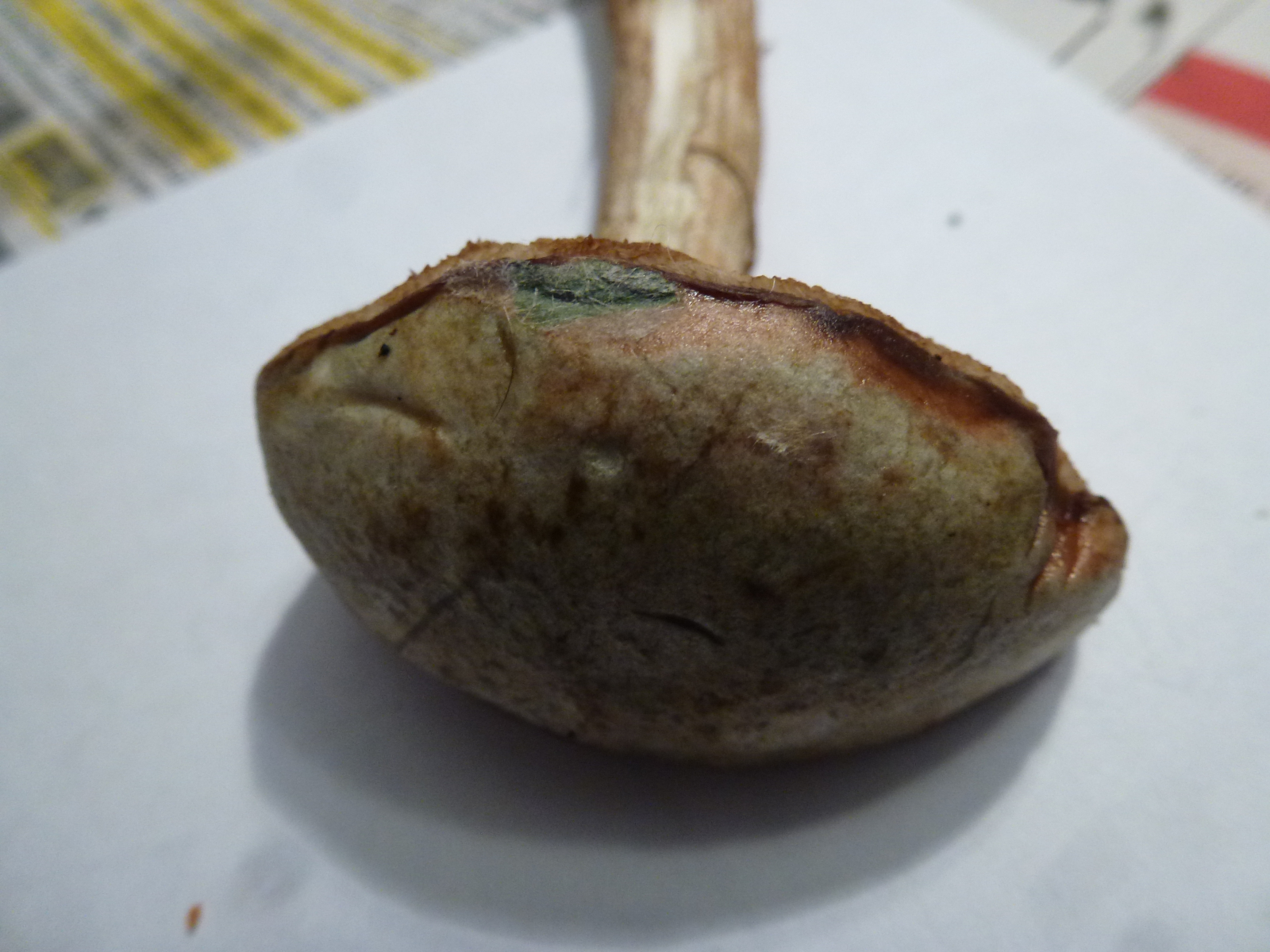 Fundort war in einem unglaublich vielfältigem Mischwald auf leicht kalkigem Boden. Dort fand ich heute übrigens sehr viele verschiedene Raufüße. Der nachfolgende Pilz sieht für mich eigentlich aus wie ein ganz gewöhnlicher Birkenpilz wenn da nur diese grünliche Farbe, vor allem am Hut aber auch am Stiel, nicht wäre. Und deswegen frage ich hiermit einfach einmal vorsichtshalber nach.
