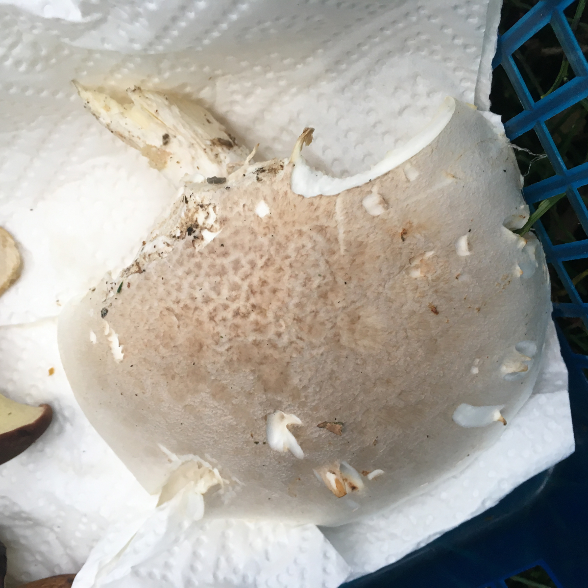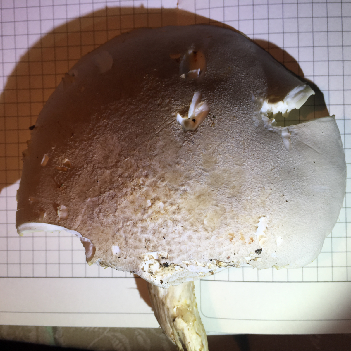 Hut ist an der Oberseite hellgrau, leicht schuppig, ca. 11 breit
