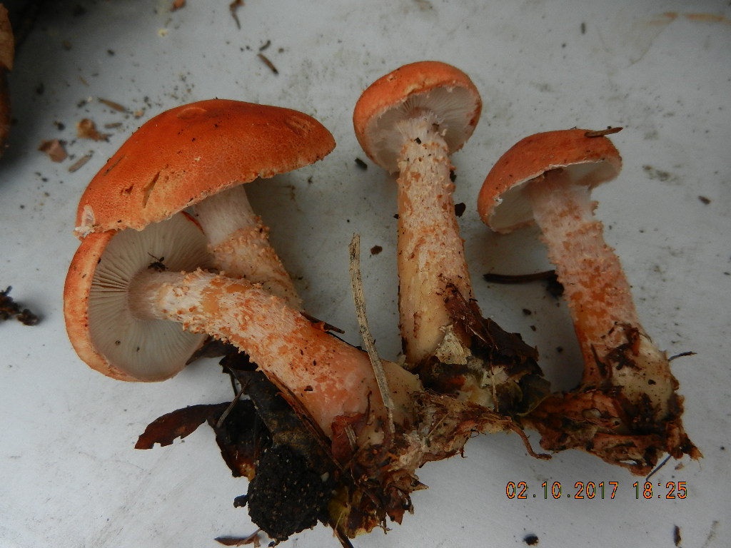 ich weiß zwar nicht genau, wer jetzt was sagt, aber ich hätte Cystoderma granulosum makroskopisch als einen zu dunkel und zu rötlich geratenen Amiant-Körnchenschirmling beschrieben, also im Habitus wie C. amianthinum, nur eben dunkler.