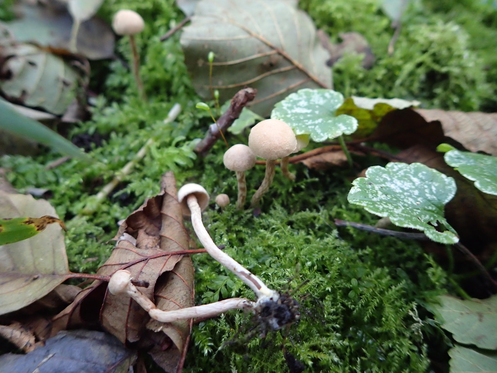 Dort fanden wir folgende Pilze. Risspilz war die Annahme aber Zweifel gab es auch. Gelöst haben wir das Rätsel nicht deshalb findet sich der Kandidat nun hier. Auffallend war bei dem die Hutunterseite. Feine Fäden, wie Gespinst, so wie es bei Cortinarien auch auftritt, lies sich bei genauem Hinsehen erkennen. Sehr fein und sehr vergänglich, weißlich, verband es Stiel und Hutrand. Mit der Lupe nachgeschaut fand es sich überall zwischen den Lamellen verteilt. So habe ich das auch noch nicht gesehen.