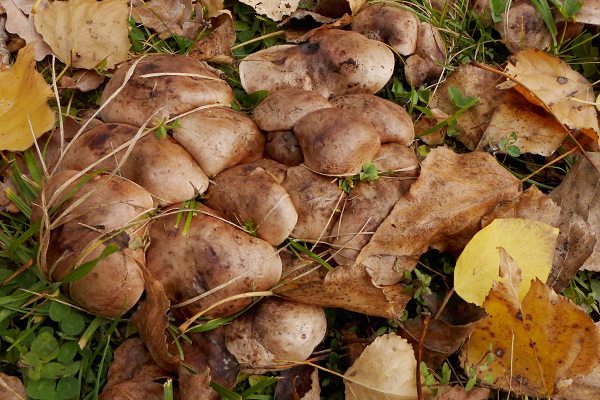 große Ahnung von braunen Ritterlingen habe ich ja nicht ... aber regelmäßig kommen bei mir braune Ritterlinge bei Pappeln, also Tricholoma populinum (denke ich ... oder sind das auch mehrere Arten, die sich darunter verstecken?)