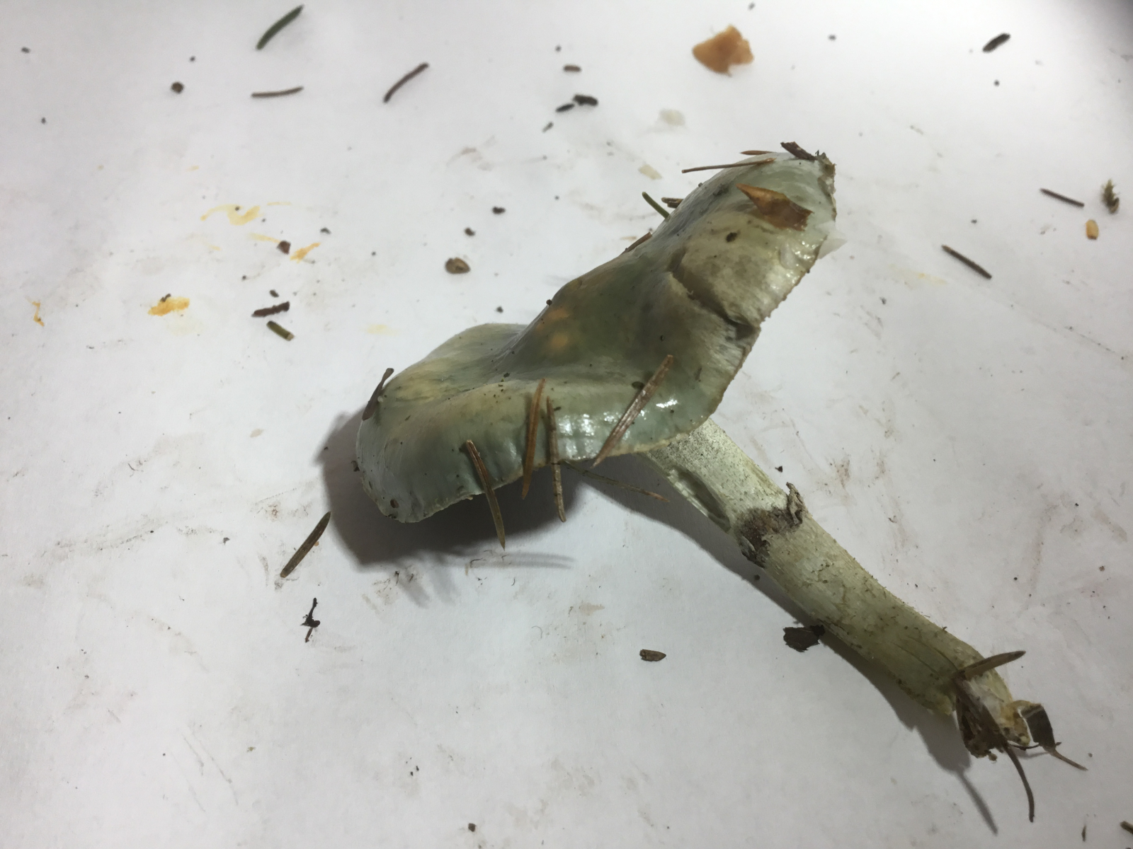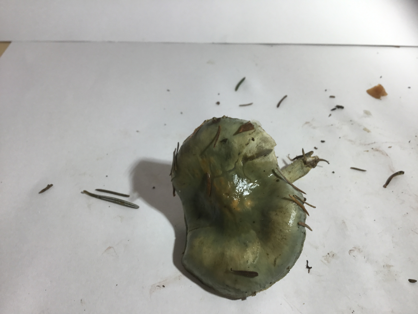 Der Ring ist trotz fortgeschrittenem "Reifegrad" noch vorhanden. Deshalb und Aufgrund der weißen Lamellenschneiden gehe ich vom Grünspanträuschling aus. Obwohl die Flöckchen am Hut völlig fehlen.