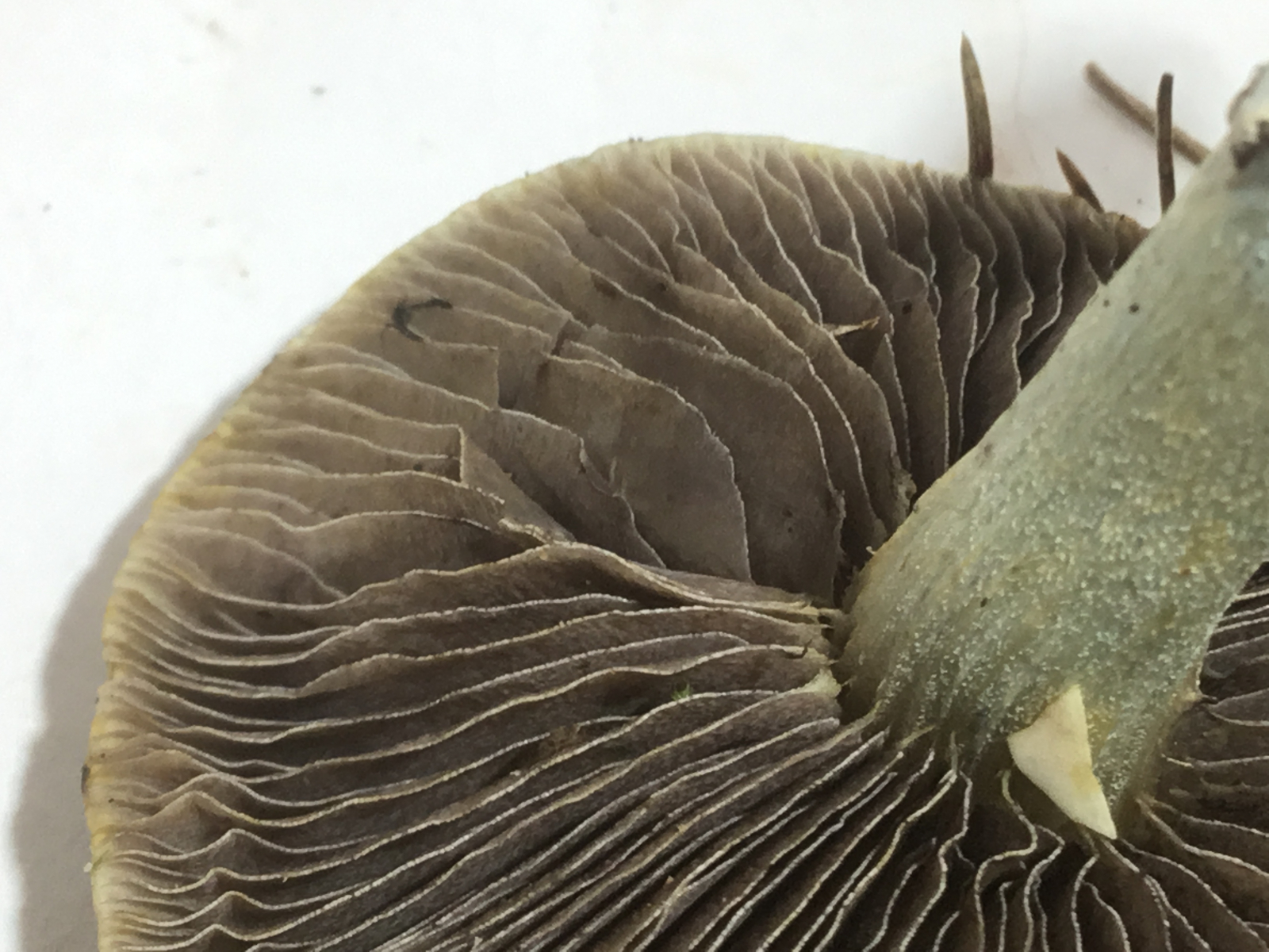 Warum passt die Lamellenfarbe nicht ? Das Ding ist fast völlig ausgesport. S. caerulea hätte wohl keinen so deutlichen Ring und auch keine weißlichen Lemellenschneiden.