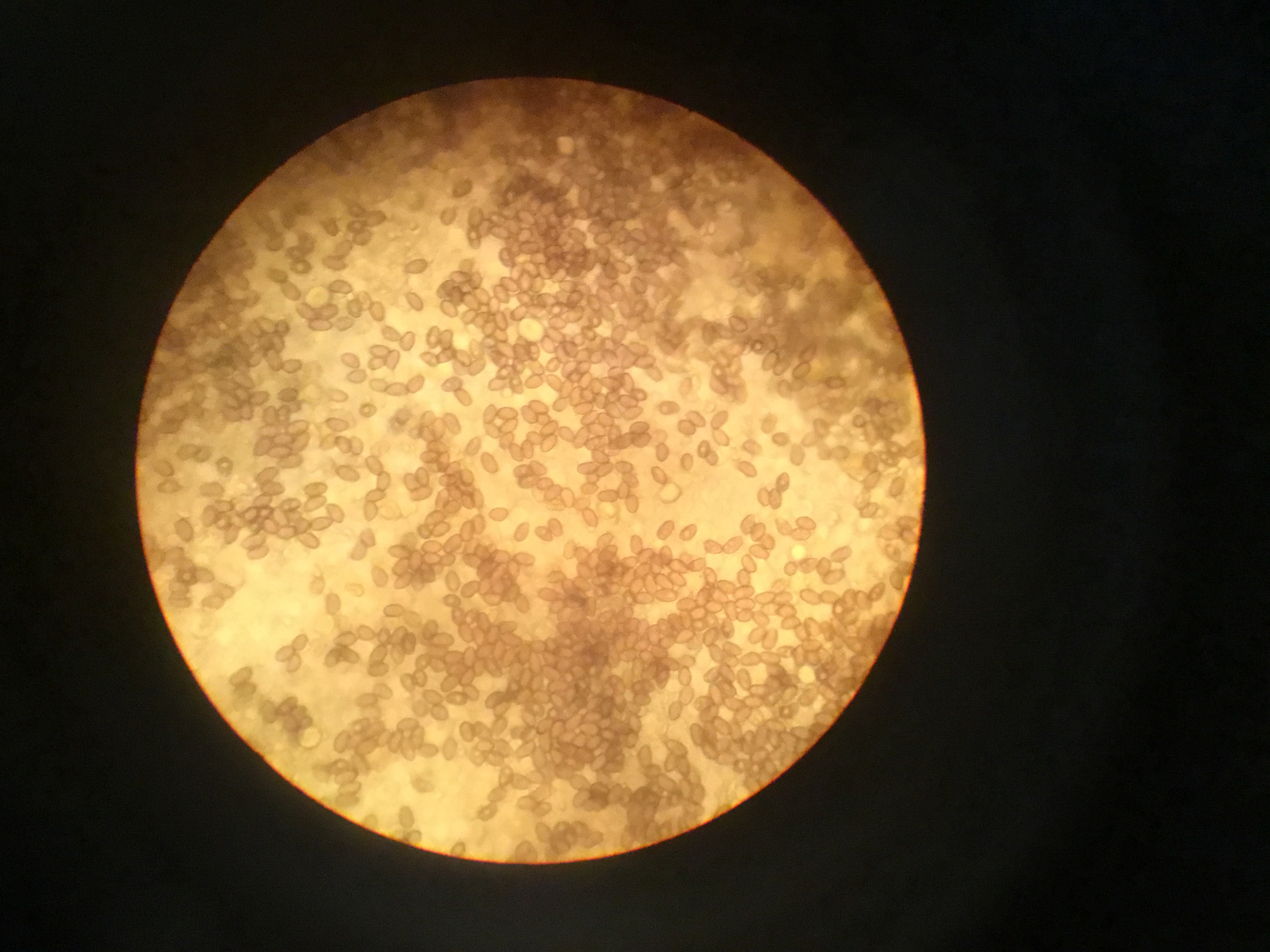 Die sterilen Chrysozystiden an der Lamellenschneide waren aber auch so unter dem Mikroskop sichtbar. Leider habe ich (noch) keine Mikroskopkamera und Photos direkt mit dem iPad zu machen ist etwas mühsam.