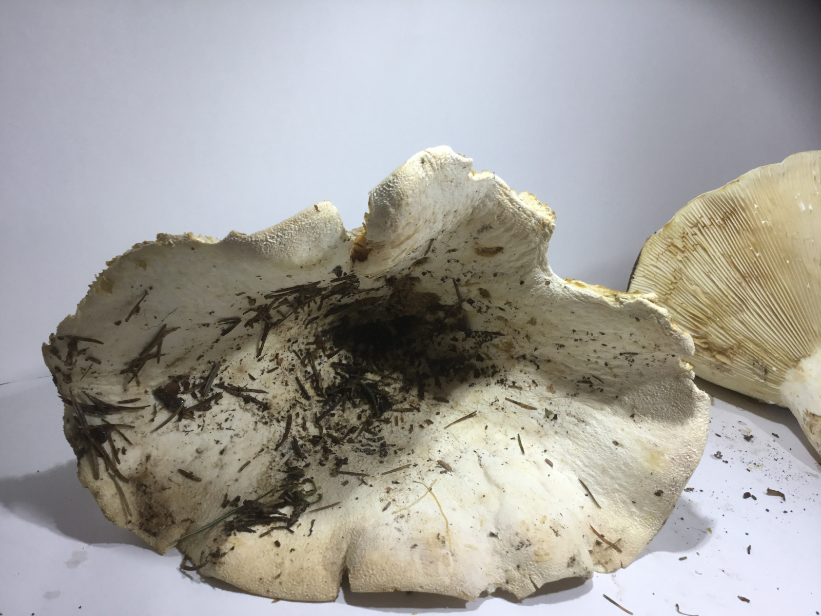 Hut: trichterförmig, Oberfläche grob-filzig strukturiert, fleckig