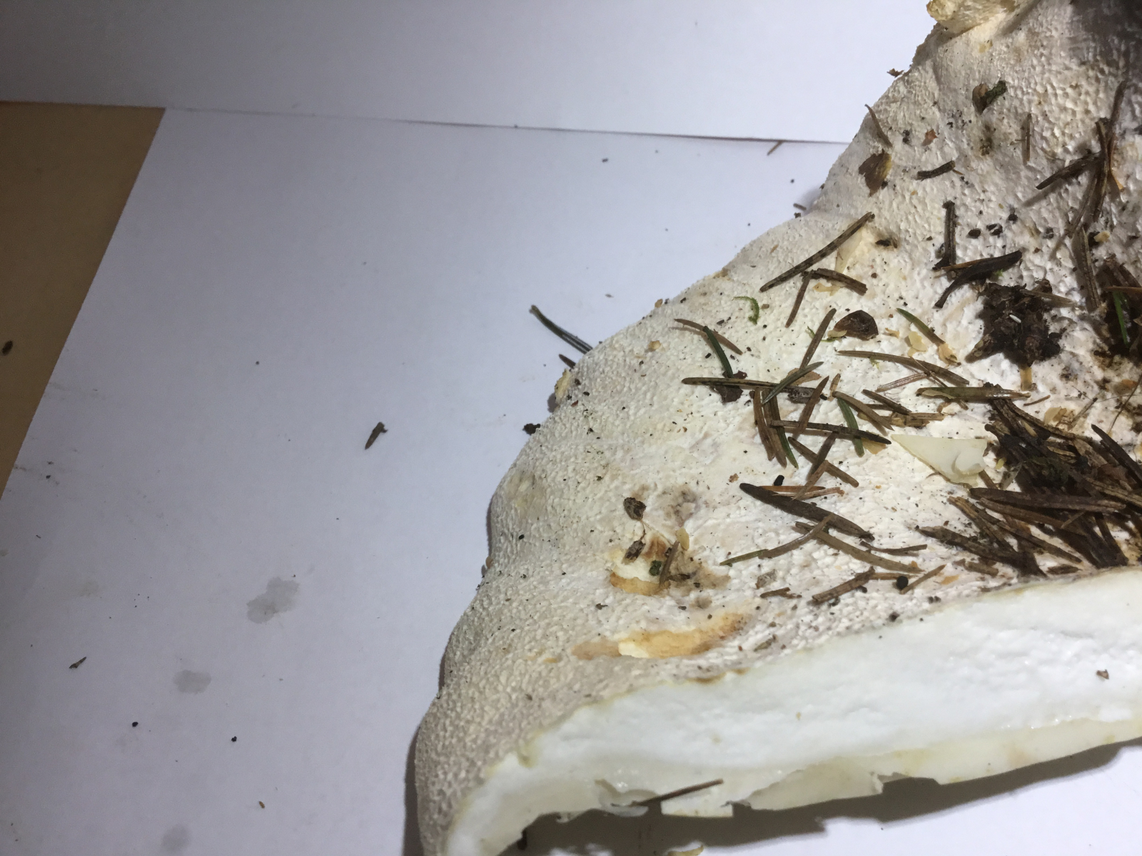 Fleisch: fest, krümelig, scharf, im Schnitt nach einiger Zeit rosa-lila Verfärbungen auf weißem Grund