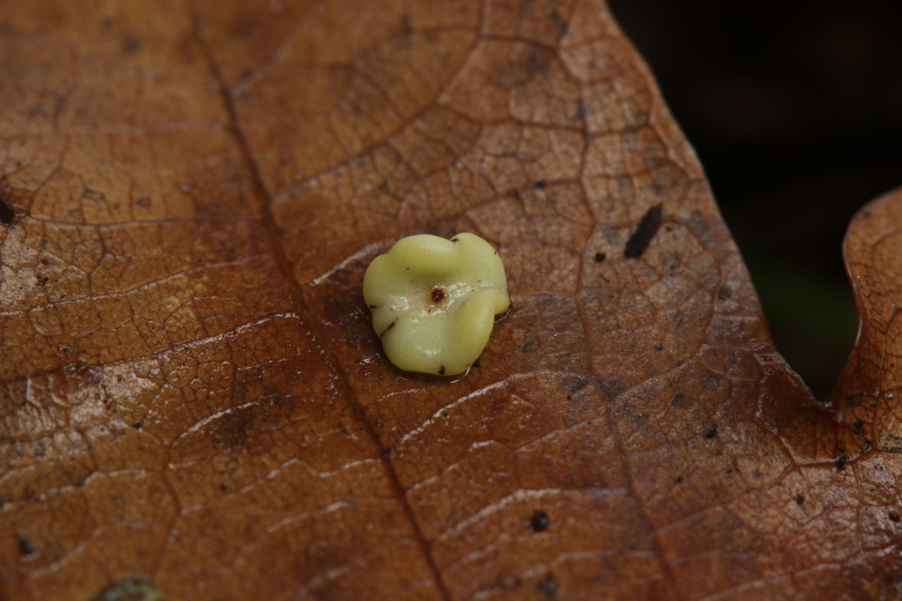 16. Ist das überhaupt ein Pilz? Gefunden auf Eichenblättern