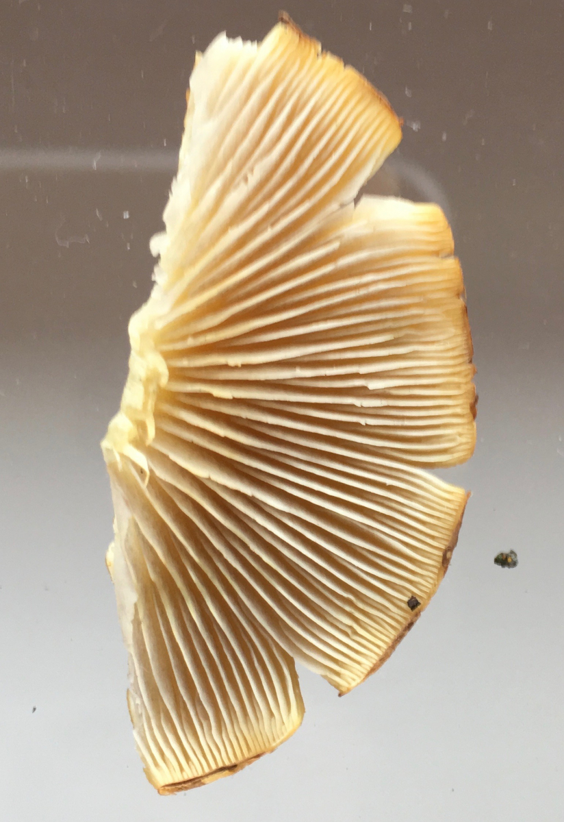 Beschreibung : jung weißlich gelblich , creme gelblich Lamellen .