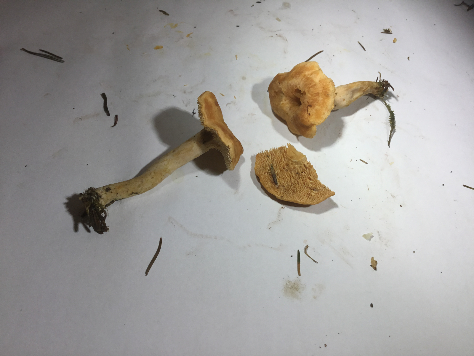 Der normale Semmelstoppelpilz ist heller. Den Roten Semmelstoppelpilz, Hydnum rufescens, lasse ich mir einreden. Allerdings frage ich mich dann, warum die alle einen Nabel haben und warum sie nicht flach am Boden Wachsen, wie sonst immer...