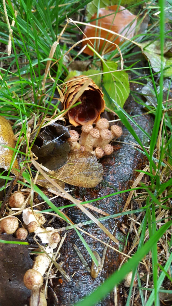 Hallo zusammen, wir haben heute eine Tour mit mehreren Familien durch einen Wald mit Wildgehege etc gemacht. Und neben üblichen Verdächtigen wie Maronen, Semmelstoppelpilzen, massenhaft Nebenkappen, Herbstlorcheln und einigen Hexenröhrlingen sind mir unzählige kbP (kleiner brauner Pilz) aufgefallen. Alle wuchsen büschelig und haben am Stiel und am Kopf kleine braune Schüppchen. Da musste ich doch an den Hallimasch denken, ich vermute den dunklen Hallimasch. Könntet ihr mir das so bestätigen? HIer war dochmal irgendwo ein Link zu einer Ausarbeitung zu Hallimasch irgendwo aus der Schweiz. Hat da noch jemand den Link?