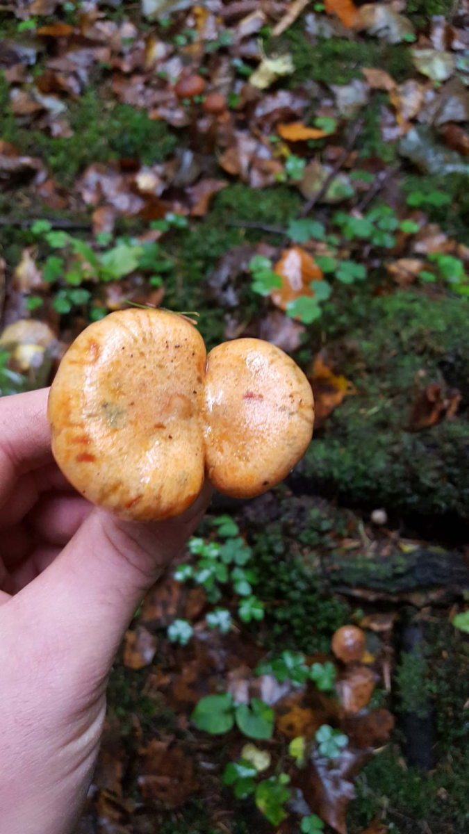 Wuchs unter Fichten, hatte dunkel orangene Milch und ein wenig grünspan angesetzt. Weitere Details sind den Bildern zu entnehmen, da ich nicht auf Pilze eingestellt war und der Pilz dort geblieben ist, wo ich Ihn gefunden habe. Einige Meter weiter standen auch noch ein ganzer Haufen größerer Exemplare. Nach 123Pilze liege ich auch richtig. Vielleicht hat ja noch jemand Einwände.