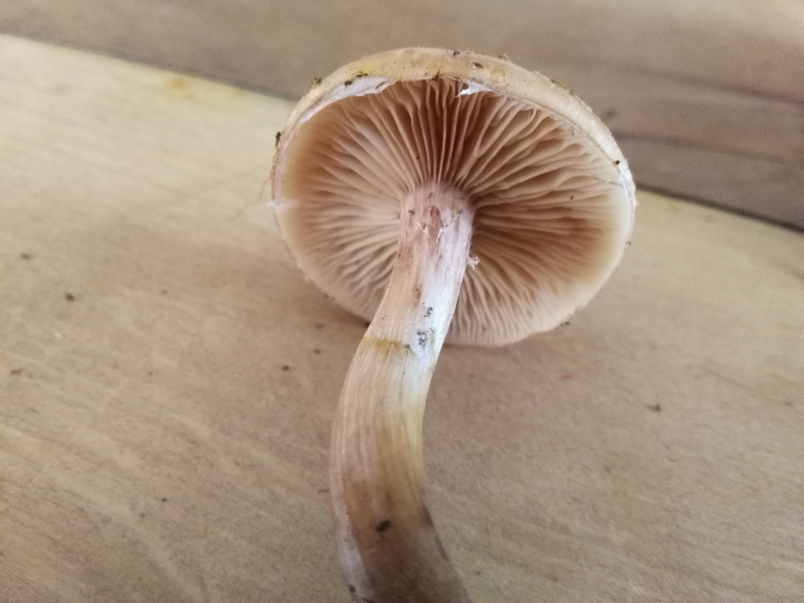 Dein Pilz sieht wie ein Hallimasch aus. Ich habe ihn gerade gestern in kleinen Gruppen auch auf dem Boden gesehen. Wie Jan bereits geschrieben hat - dort soll irgendwo Totholz vergraben sein, eine Ast oder so. Ansonsten wächst er oft und gerne sehr buschelig auf alten Baumstümpfen.