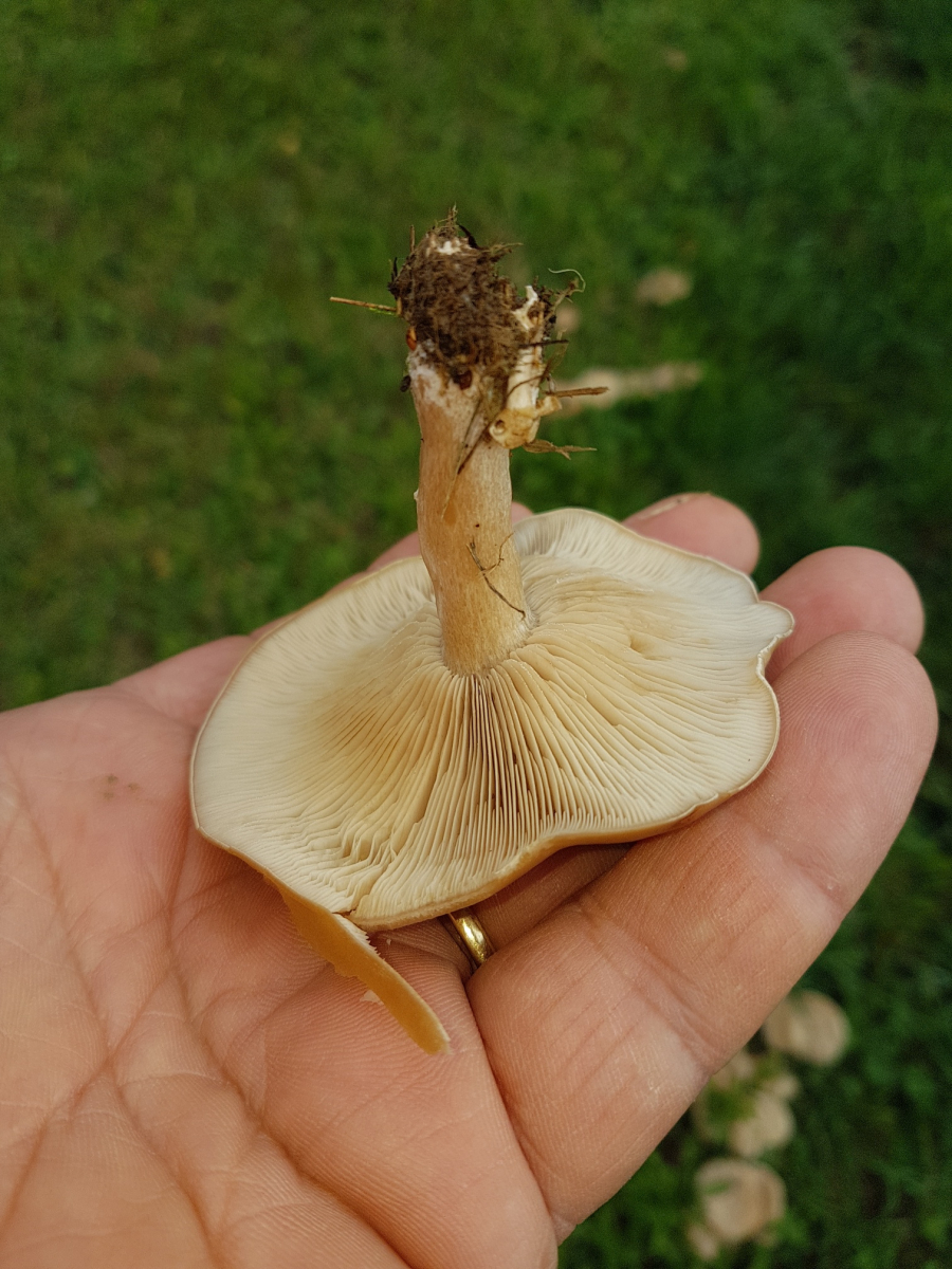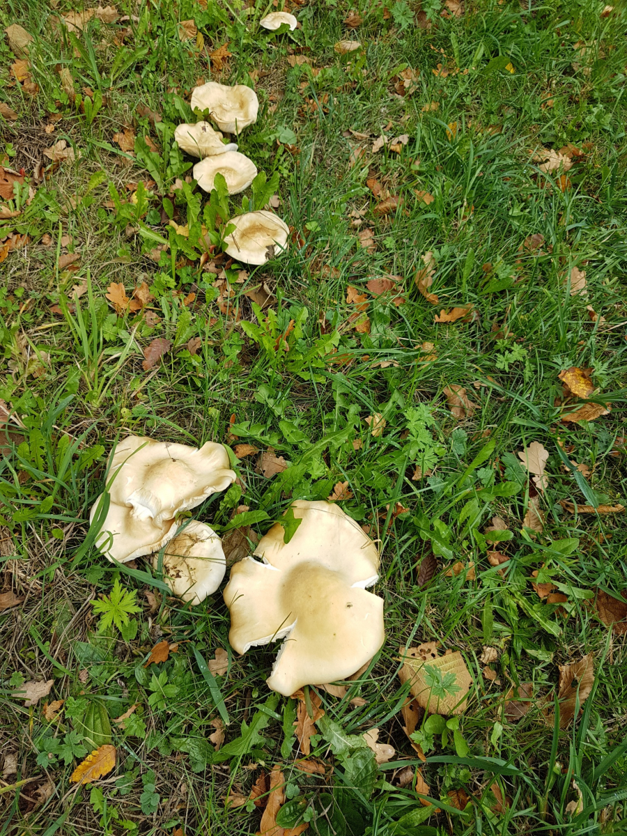 Gestern habe ich auf einer Obstwiese diese Pilze gesehen. Kann mir jemand sagen, um welche Art es sich handelt. Meine Literatur hat leider nichts ausgespuckt...