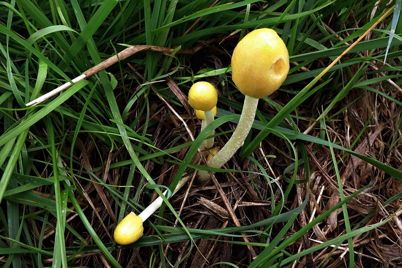4. auf der Wiese auf dem Weg zum Gölm-Bach einige Gold-Mistpilze - Bolbitius vitellinus