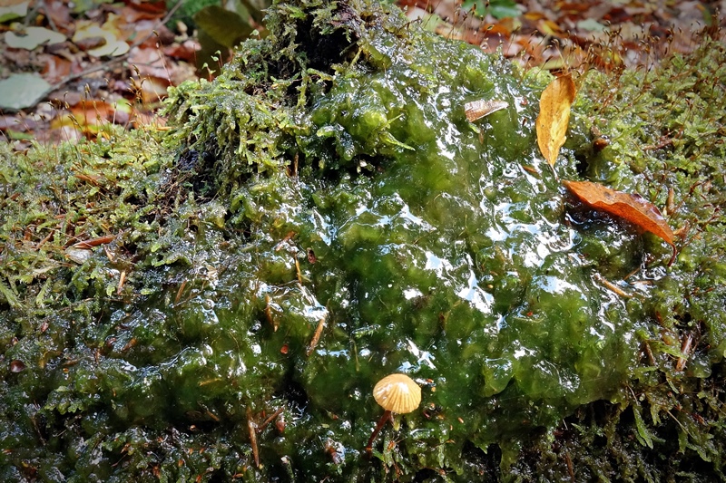 8. ein farbloser Schleimpilz, 20 cm, im Moos - habe ich so noch nicht gesehen - bei 123 wird der
