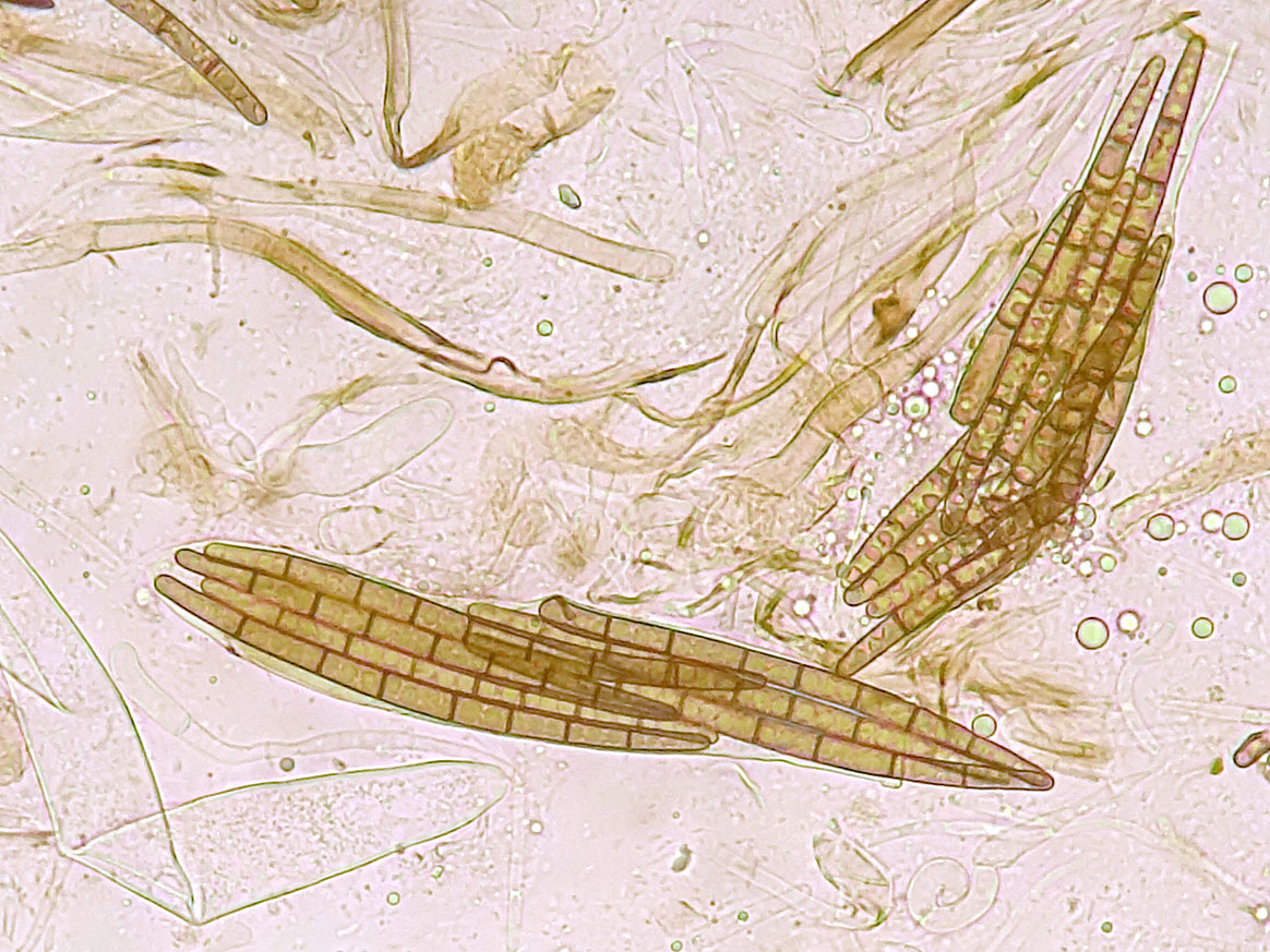 bei unreifen Sporen von Trichoglossum hirsutum sind auch noch keine 15 Septen ausgeprägt. Um das zu sehen, muss man wirklich reife, abgeschossene Sporen haben (idealerweise aus Abwurf).
