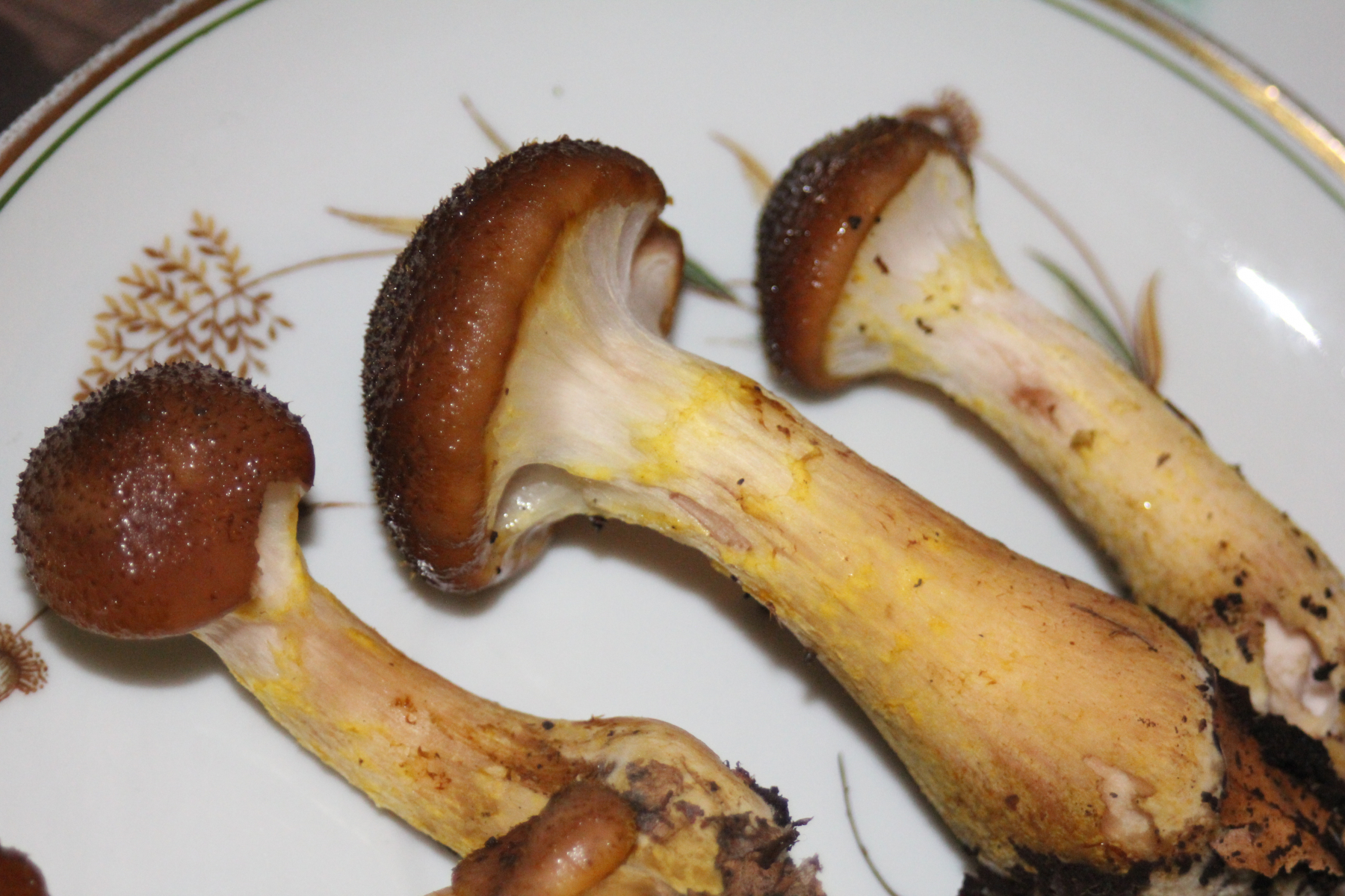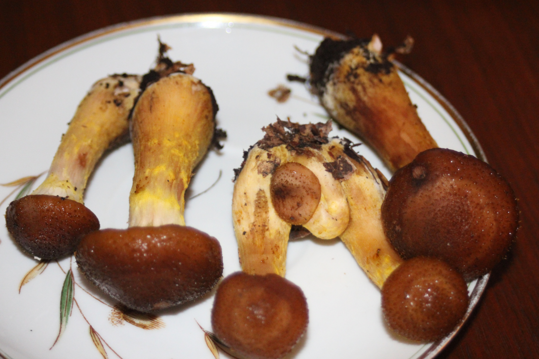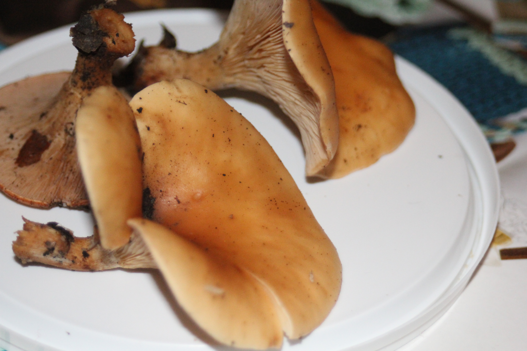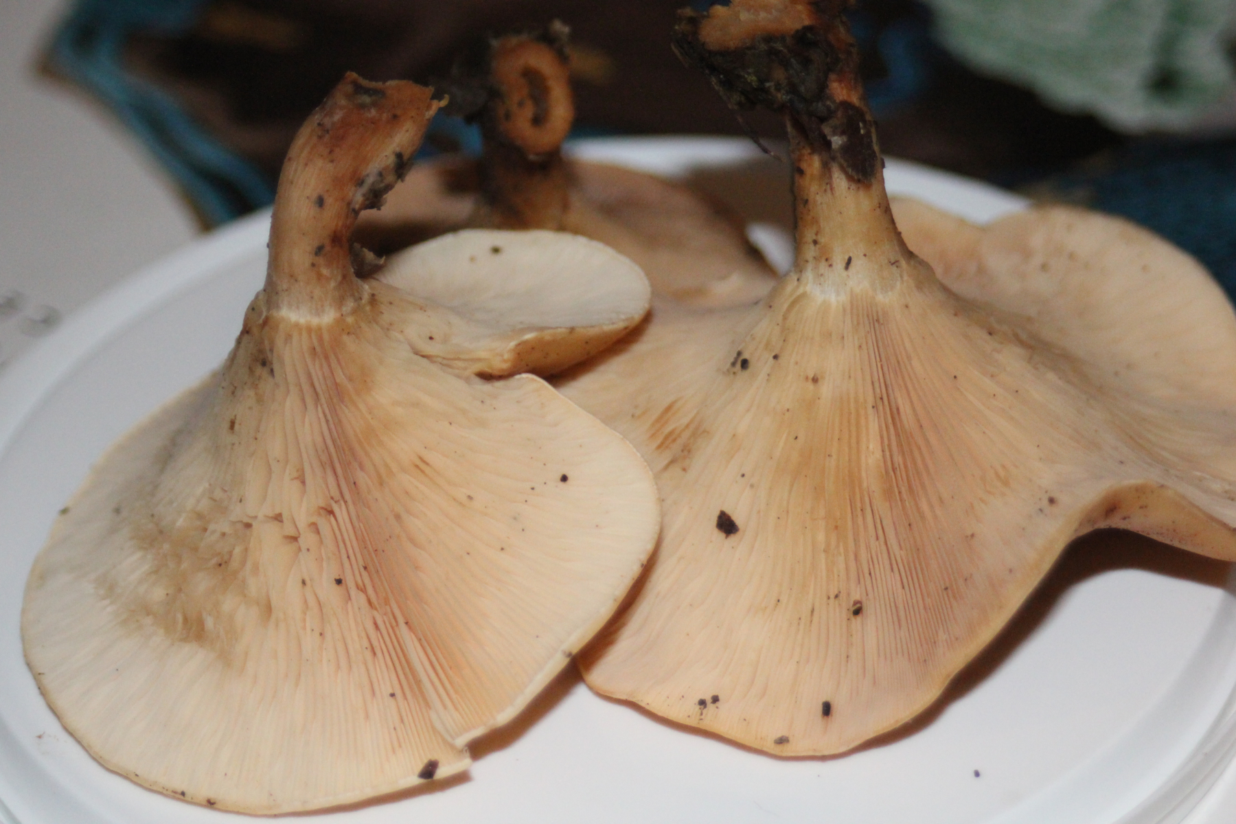 1) Dieser Pilz wuchs in einer Gruppe, die meisten standen eng beieinander zuzweit-zudritt, aber einige auch einzeln.
