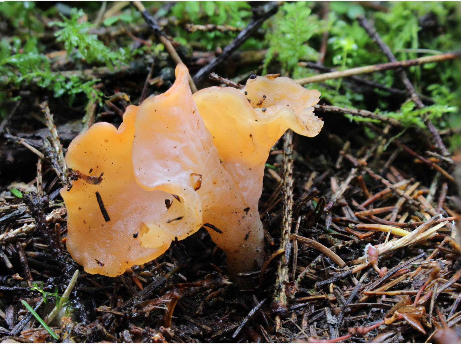 18) & 19) Am nächsten Tag wurde ein für das Sauerland bzw. ganz NRW eher seltener Rötlicher Gallerttrichter (Tremiscus helvelloides) entdeckt. Den kannte ich bisher nur aus dem Schwarzwald.