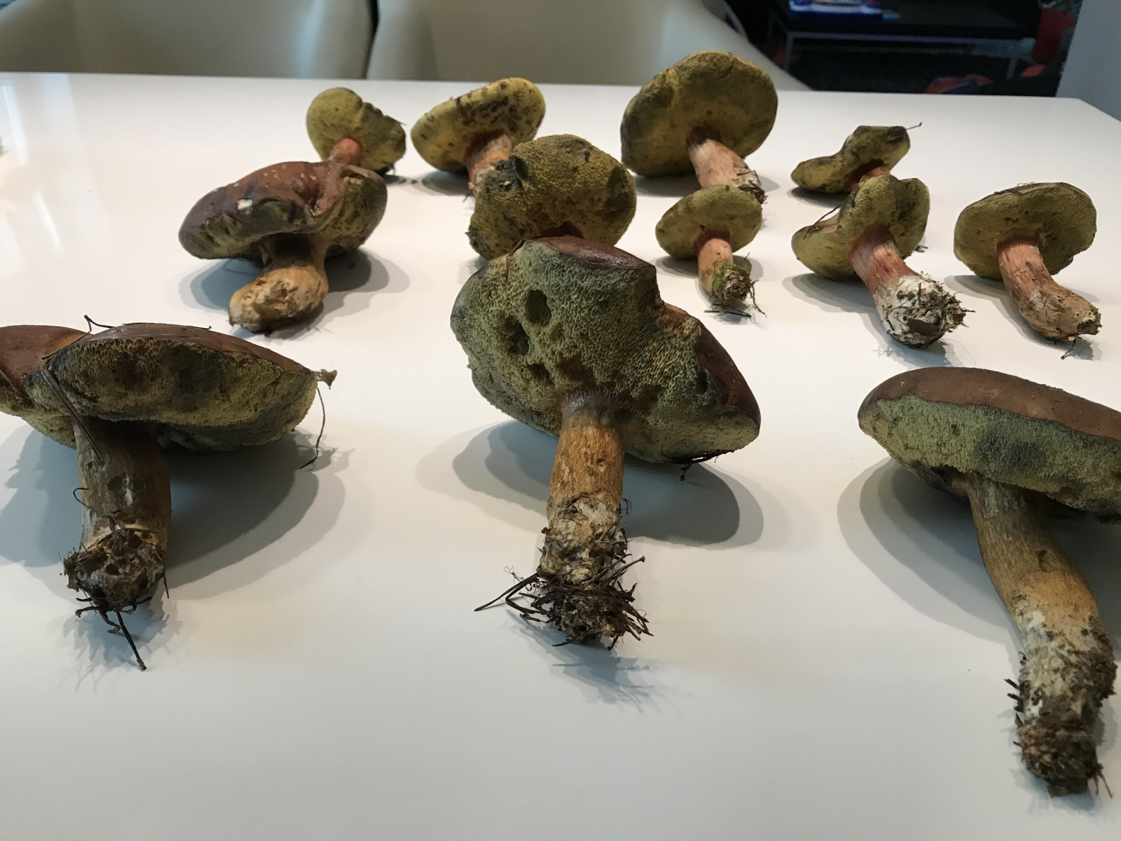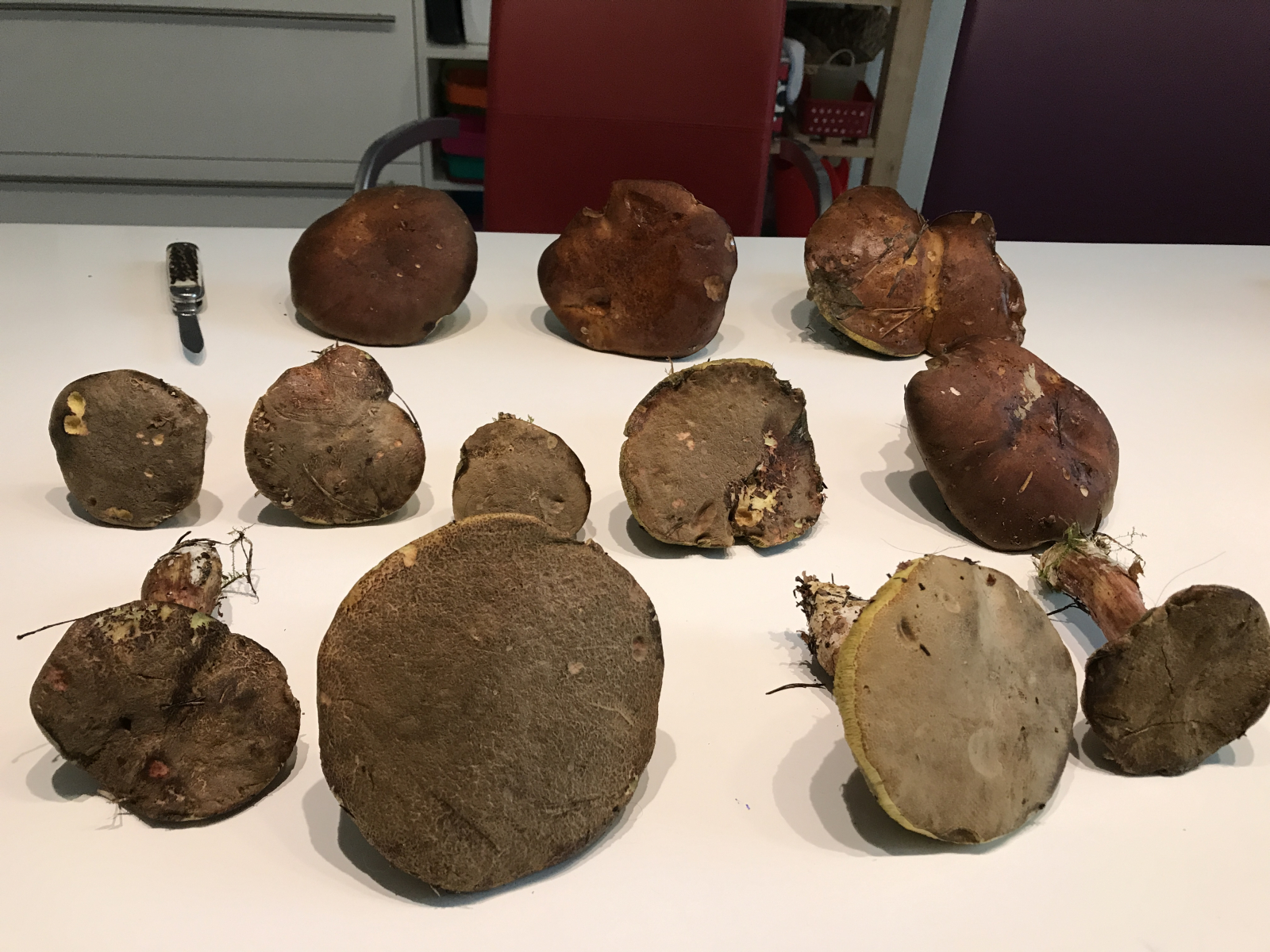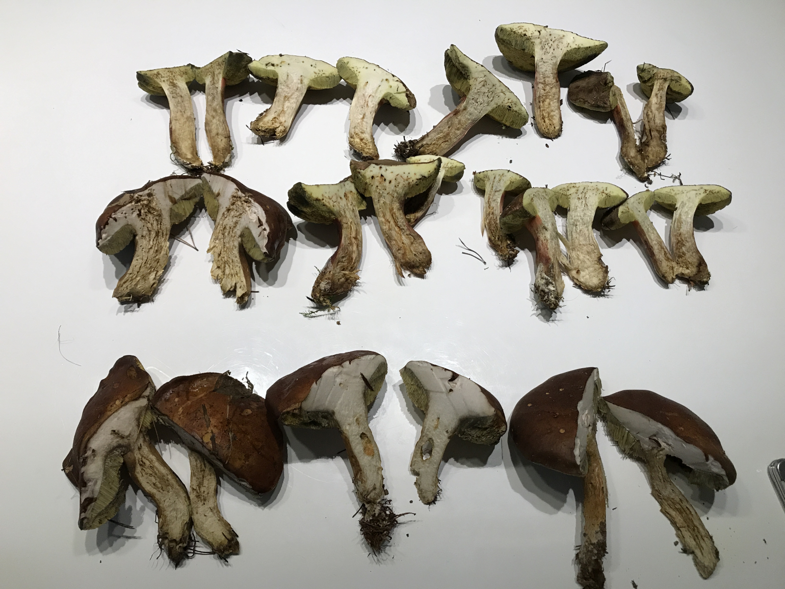 Bitte nicht den ganzen Korb auf ein Bild. Je Pilz ein Foto von oben, von unten, von der Seite und vom Längsschnitt. Bitte auch den Link für Neulinge lesen.