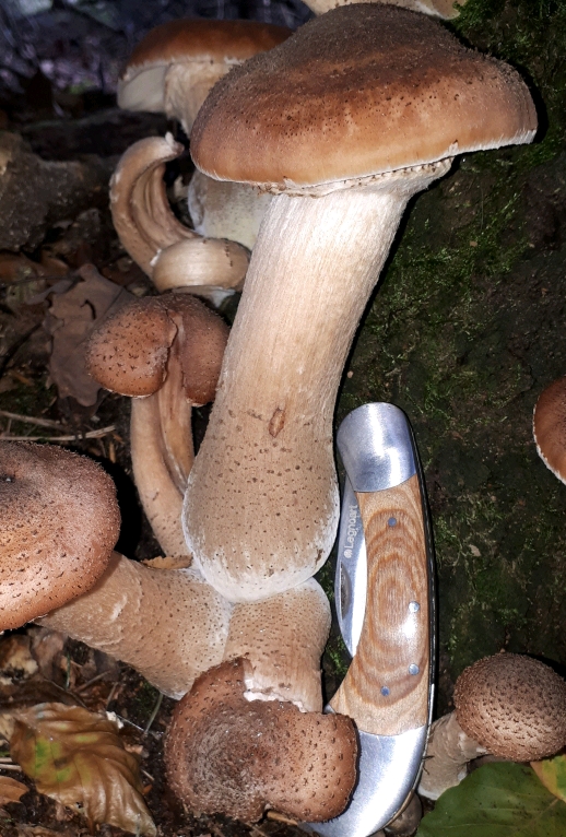In anderen Jahren habe ich auch gerne mal die geschlossenen, jungen Fruchtkörper genommen. Die bleiben immer so schön bissfest und sind - leider - öfter mal schwer verträglich. Was durchaus daran liegen kann, dass man sie nicht so durchkauen kann, wie die ausgewachsenen Hallimasch. Delikat bissfest muss also nicht immer die beste Option sein.