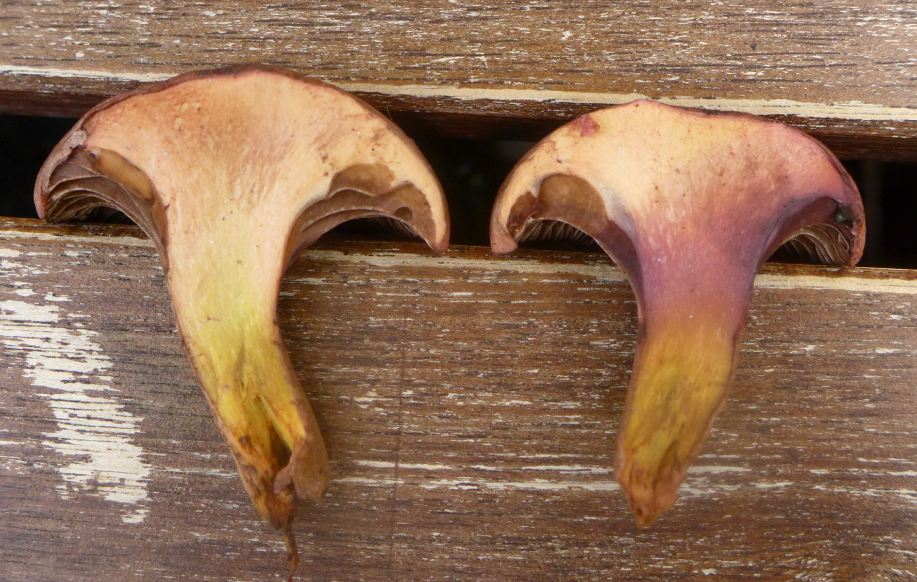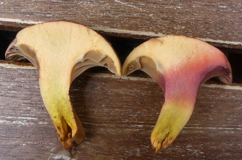 ich glaube gestern welche entdeckt zu haben, jedoch ohne sichtliche Verfärbung ins rote bei Verletzungen, wie es auf 123Pilze beschrieben ist, ich konnte auch keinen weiteren Hinweis in meiner Lektüre noch im Internet finden, das diese Verfärbung stattfindet, selbst bei den Bildern auf 123Pilze ist keine rötliche Verfärbung zu erkennen.