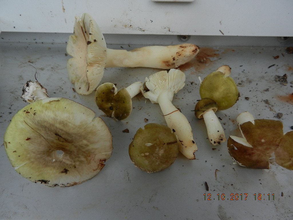 zur Auflösung: alle Pilze auf diesem Bild sind grünhütige Täublinge, nur nicht der ganz links, das ist ein Grüner Knolli.