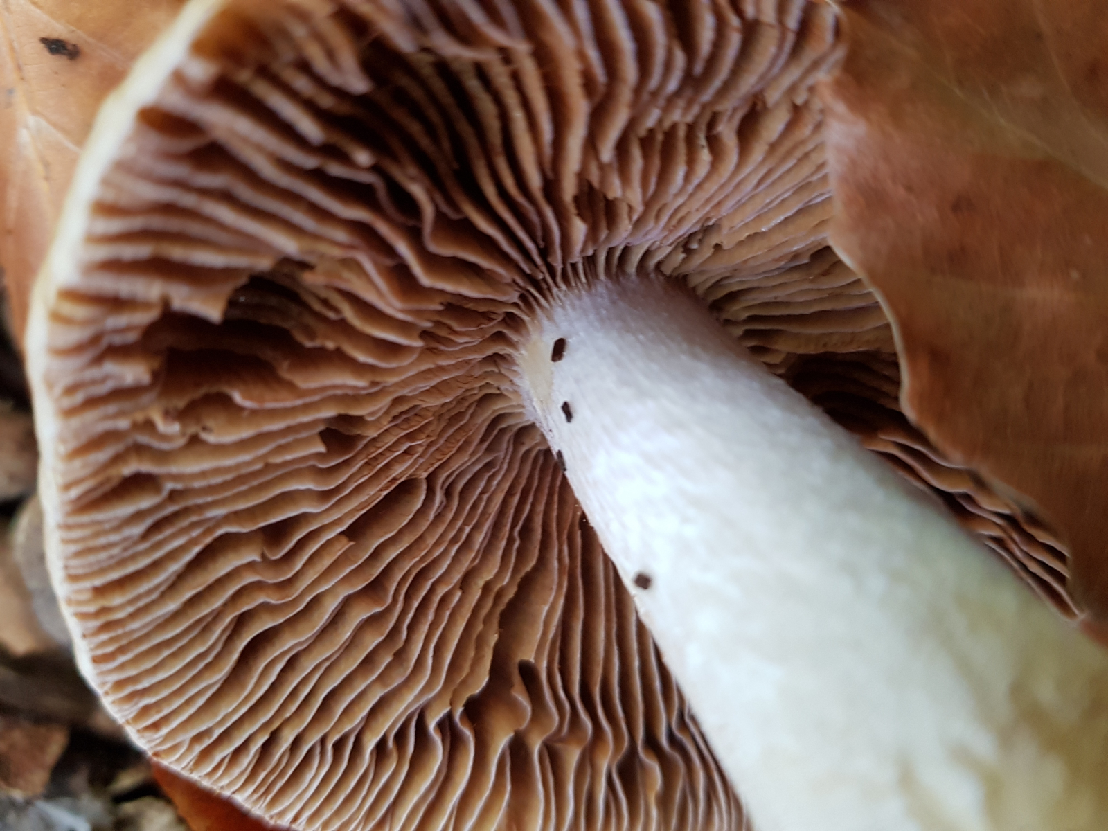 Also den Schleierling kann man schon bestätigen, finde ich. Die Untergattung auch: Das ist heir Myxacium (Schleimfüße). Das Velum am Stiel wäre hier bei frischen, jüngeren Exemplaren etwas rosalich, der Geruch beim Rubbeln an der Stielbasis etwas nach Honig.