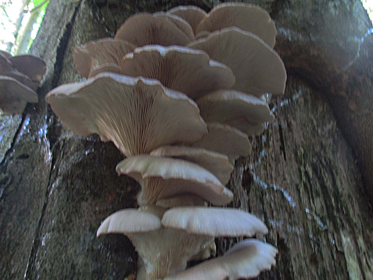 ein Baum mit alten Austernseitlingen (Pleurotus ostreatus)