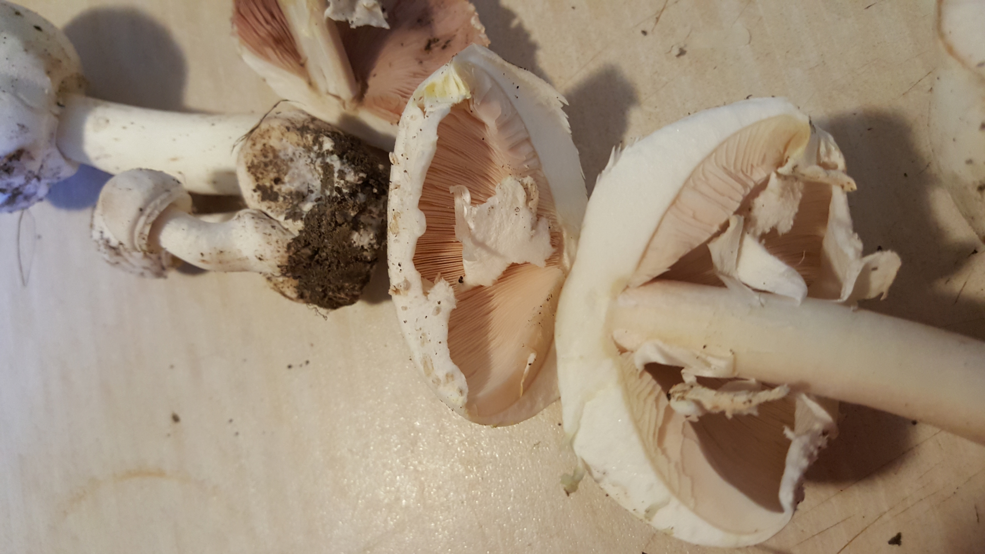 A........jetzt sehe ich mehr. Prima. Stielbasis verdickt.............Manschette ist zerfelddert, sie ist also dabei, es gilbt, wenn es jetzt nach Anis riecht, dann ist wahrscheinlich alles gut.