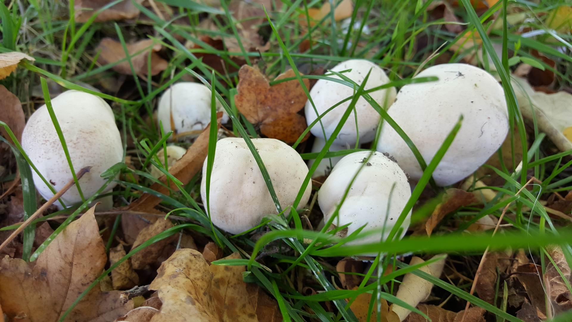 Heute mittag nun beim Gassigehen bin ich auf eine Ansammlung weisser, champignonähnlicher Pilzgruppen gestoßen. Ein alter Herr sagte mir, das sind Wiesenchampignons. Auf meine Frage, ob er sich da sicher sei, meinte er "ja, das könnten welche sein". Und je mehr ich nachhakte, desto unsicherer wurde er.