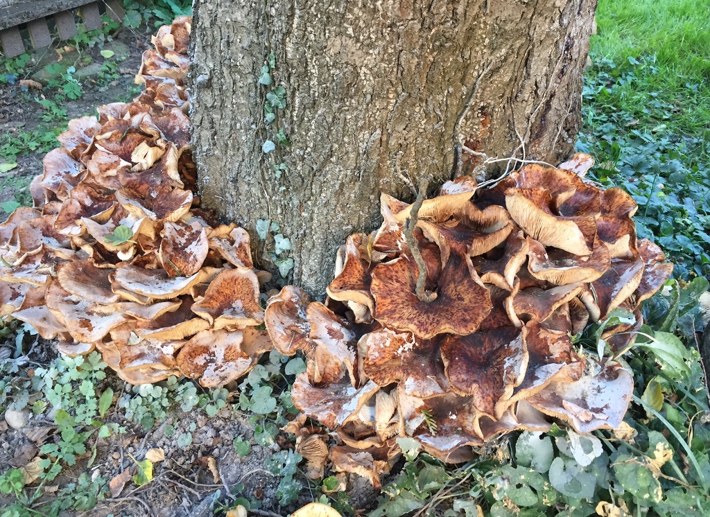 Da Halimasch aber wurzelbürtig ist und der Pilz auf allen Seiten des Baumes und direkt am Wurzelanlauf auftaucht, wird er hier doch schon ordentlich Schaden angerichtet haben.