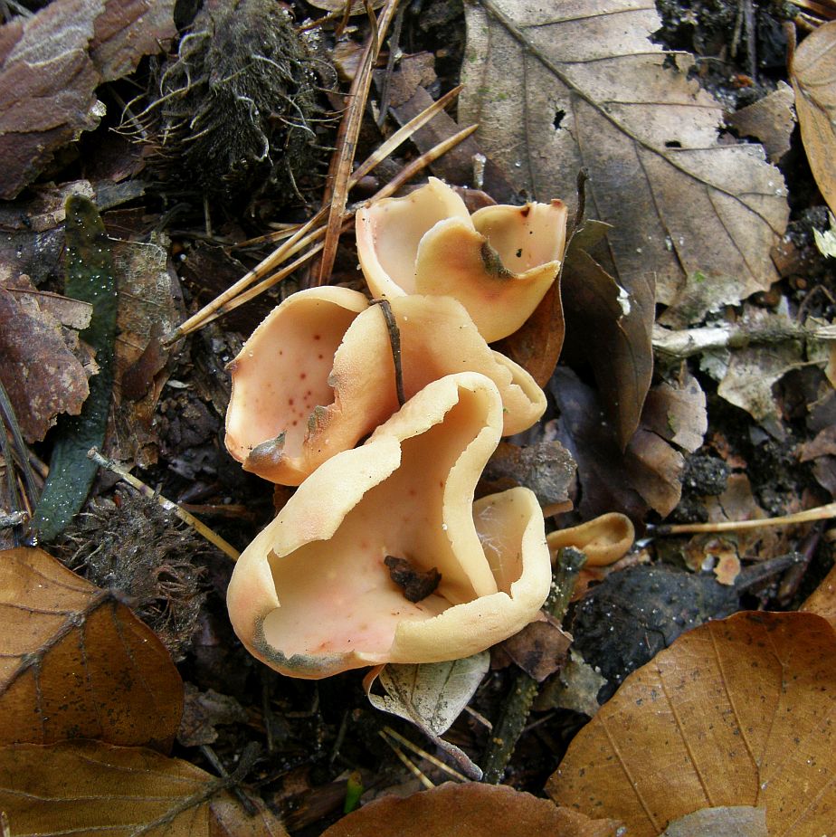 25: Pluteus aurantiorugosus = Orangeroter Dachpilz (mit Peziza spec.)