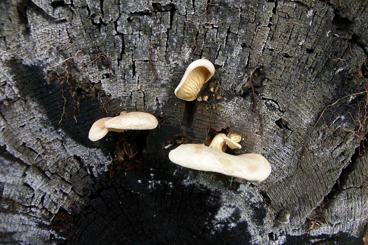 Da hatte ich nämlich auch Clitopilus (an einer Stelle) mit eher grauen Hüten (noch relativ kleine Hüte), an anderen Stellen normal weiße Pilze (kleinere und sehr ausgebreitete Hüte).