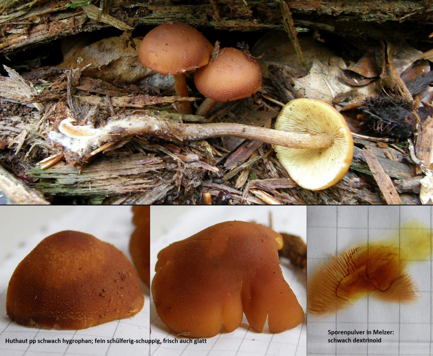 Das Einzelexemplar hatte ich eigentlich nur darum mal fotografiert, um von der Art eine Guajak-Reaktion zu haben. Negativ, wie erwartet. Das ist wohl die häufigste Braunhütige Art in Laubwäldern.