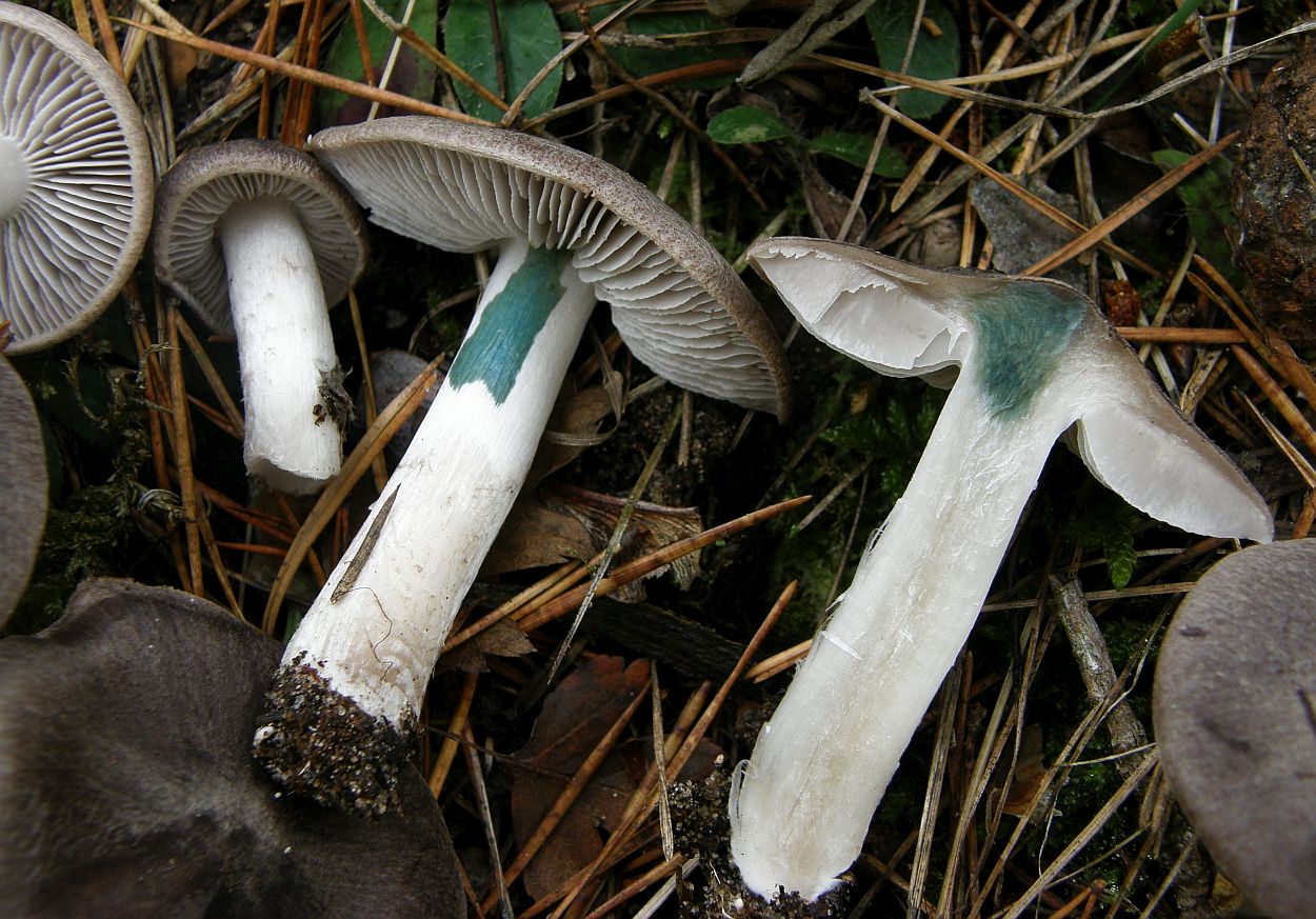Fleckt an der Stielbasis bisweilen grünblau, kein Wunder, ist wohl nahe verwand mit Tricholoma columbetta. allerdings schmieriger auf dem Hut und mit deutlicherem Mehlgeruch. Ist Tricholoma columbetta eigentlich wirklich nur eine Art?