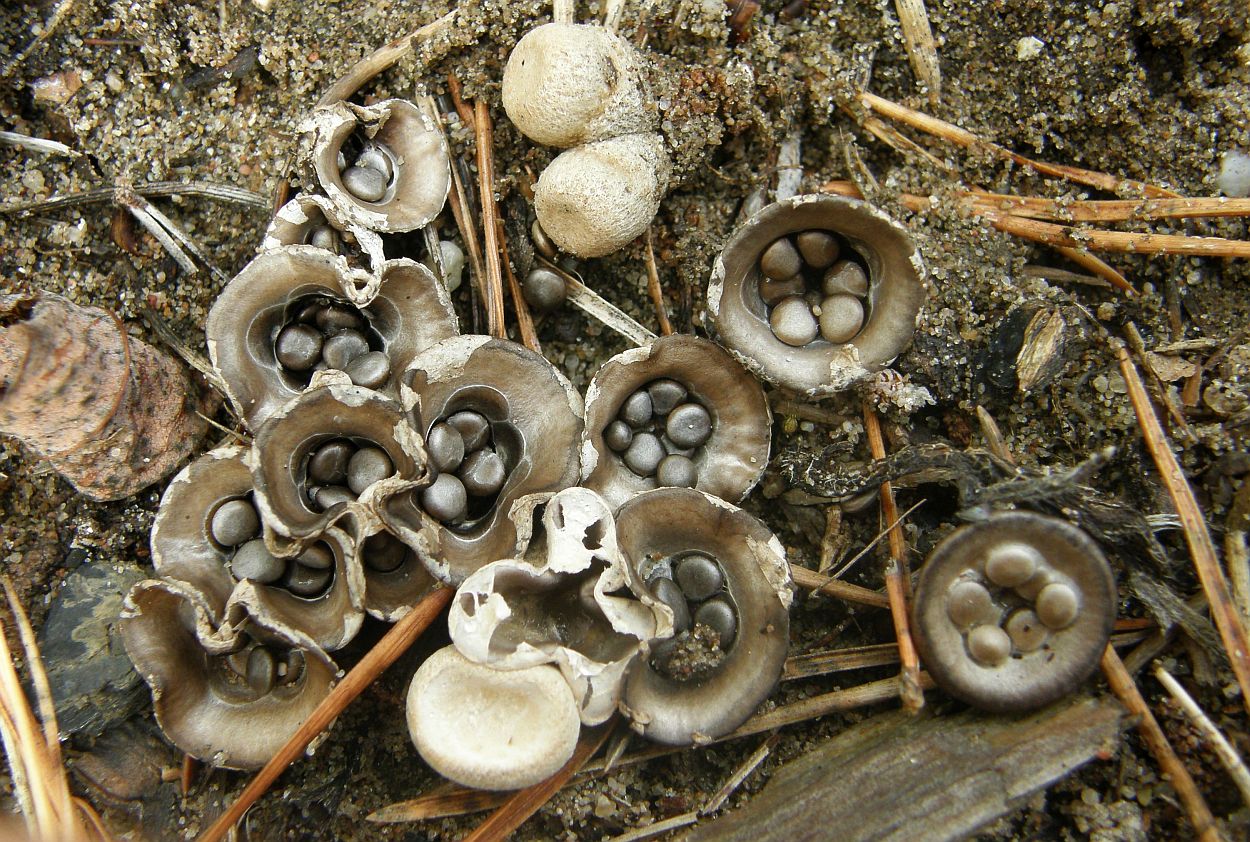 und Gestreifte Erdsterne / Geastrum pectinatum: