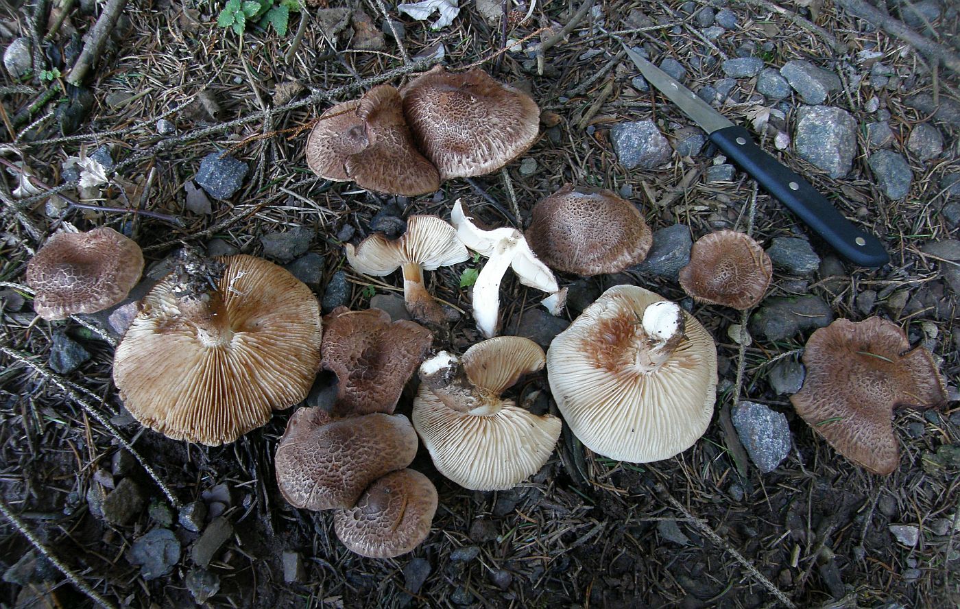 Ein etwas ungewöhnliches, weil auch stark schuppiges Einzelexemplar. dank des beim kauen bald fies und anhaltend scharfen Geschmacks aber gut zu erkennen. Fruchtkörper mit aufschuppenden Hüten sind mit schon mehrmals auch in Kollektionen mit ansonsten normal faserigen Hüten begegnet.