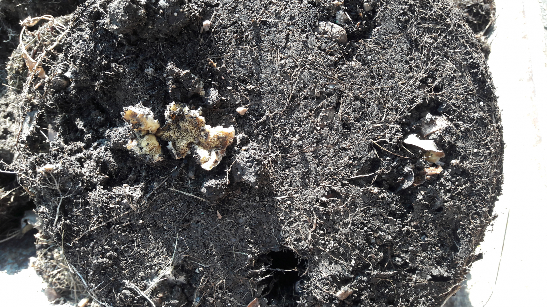 heute habe ich die tomatenstauden vorm haus weggeräumt, beim ausleeren eines kübels sind mir quasi am kübelboden folgende Pilze aufgefallen