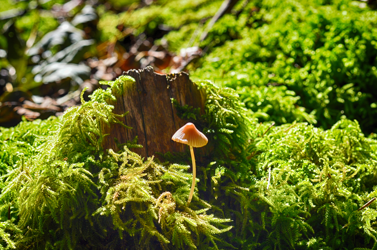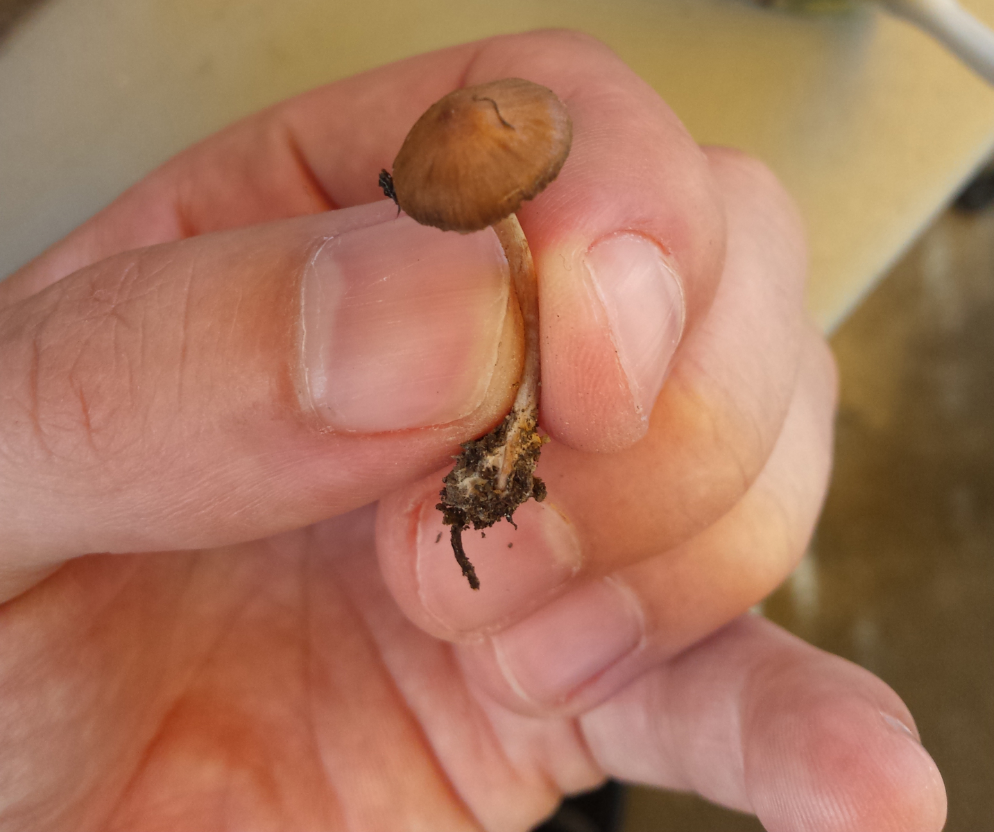 Und der auf dem letzten Bild, der noch in seiner natürlichen Umgebung steht muss eine andere Art sein. Der hat einen dünneren, eher glasigen Stängel und ist ein Helmling - wenn ich das richtig sehe.