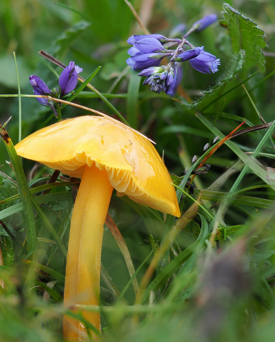 Hier gibt es auch viele Saftlinge. Aber ihr habt wirklich in echt den Porpolomopsis calyptriformis gefunden?? 8| 8| 8| Da würde ich mich gar nicht trauen, ihn überhaupt auf einer Saftlingswiese zu erwarten. Wieso ist das denn so toll da, beschreibt doch mal das Habitat :)