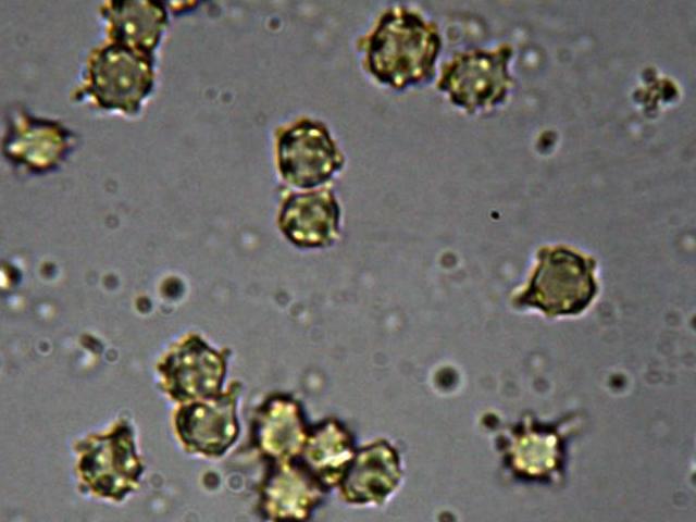 Schwaches Bild , aber erkennbar. Durchmesser 5-6 µm.