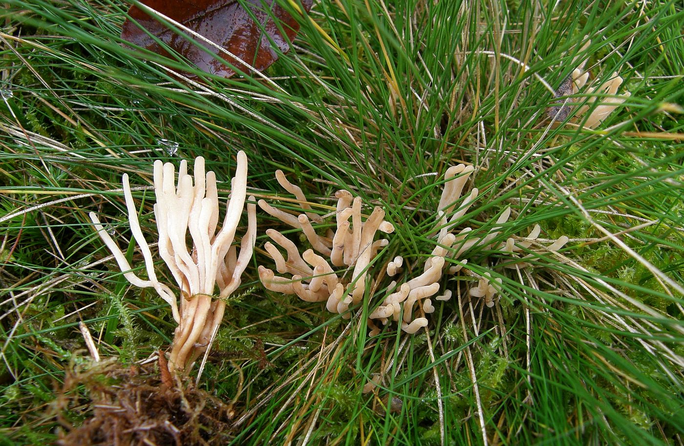 Und eine habe ich noch, die ist ziemlich ungewöhnlich. Ich nenne die jetzt mal Ramariopsis cf tenuiramosa (Strohfarbene Wiesenkoralle):