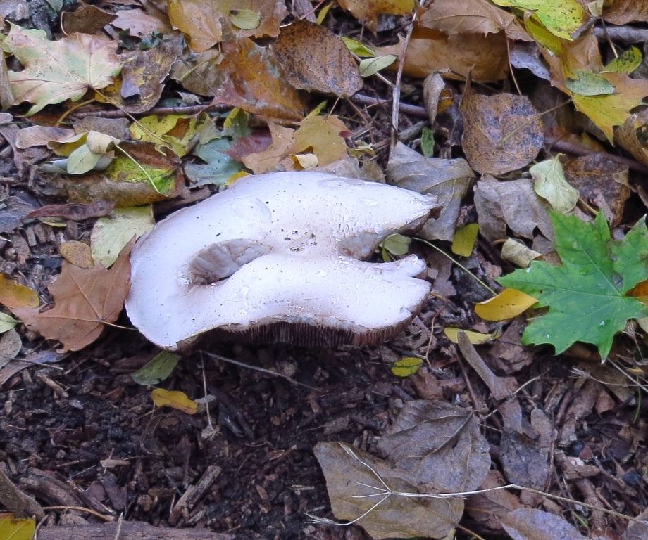Die ersten beiden Bilder zeigen den selben Pilz (Bild 2 nach 2 Tagen). Nach weiteren zwei Tagen war dieser Pilz leider zerstört, aber die noch liegenden Hutreste zeigten altrosa gefärbte Lamellen. Es war nirgends eine Gilbung sichtbar.