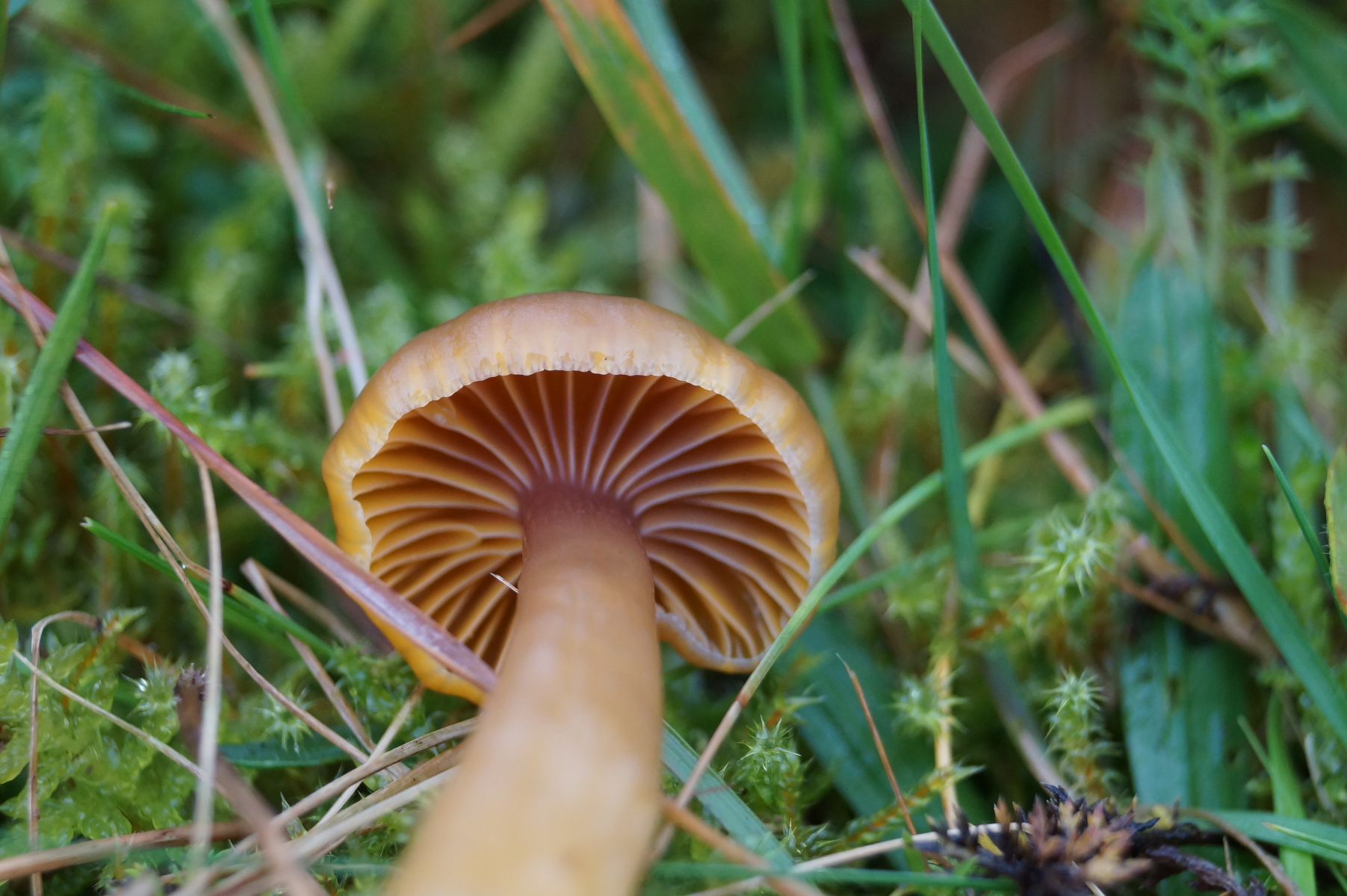 Zunächst dachte ich an etwas zu kleine Wiesenellerlinge...2 Sekunden später war mir aber das Orange des Hutes zu hell...Ausserdem ist der Wuchs büschelig...komische Pilzchen...dann einen rausgenommen und bin fast etwas erschrocken