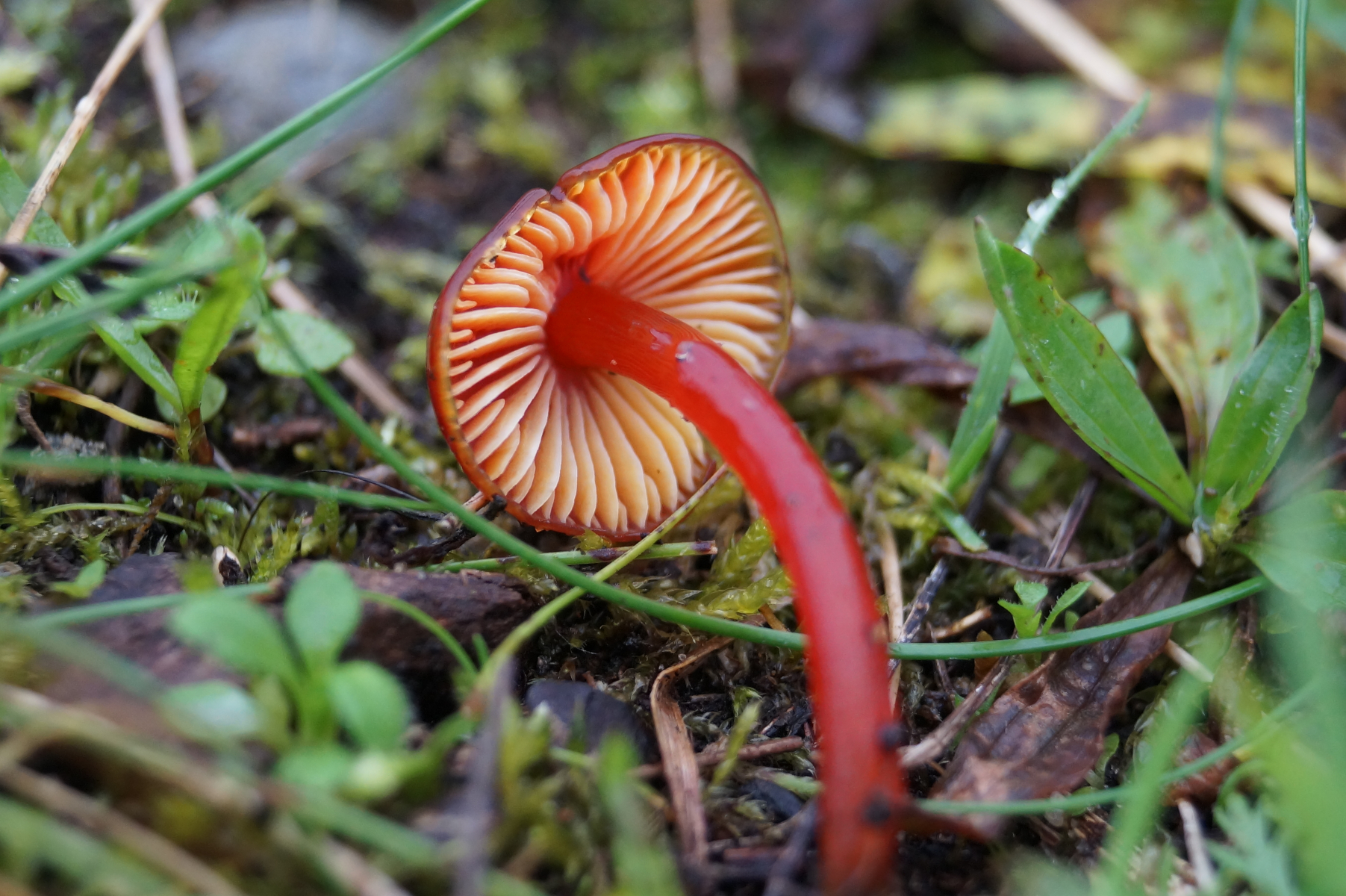 Sie wuchsen zwar auf der großen Buntwiese aber an einem dortigen Sonderstandort...dort ist es deutlich "ärmer" als im normalen Sand...so mineralisch grobkörnig durchmischt...es stehen dort einige Hundsflechten und andere Flechten rum..Nablinge sind zu finden ...Fk sind sehr schmächtig aber haben eine leuchtenden dunkelrote Farbe...Hutdurchmesser 1cm und 2,5cm hoch...nur wenig schleimig und der wirklich sehr zarte Stiel scheint wohl hohl zu sein...