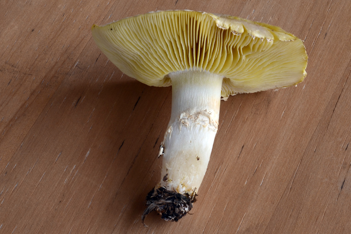 Auffällig ist hier das starke Gilben, an den Lamellen besonders stark erkennbar