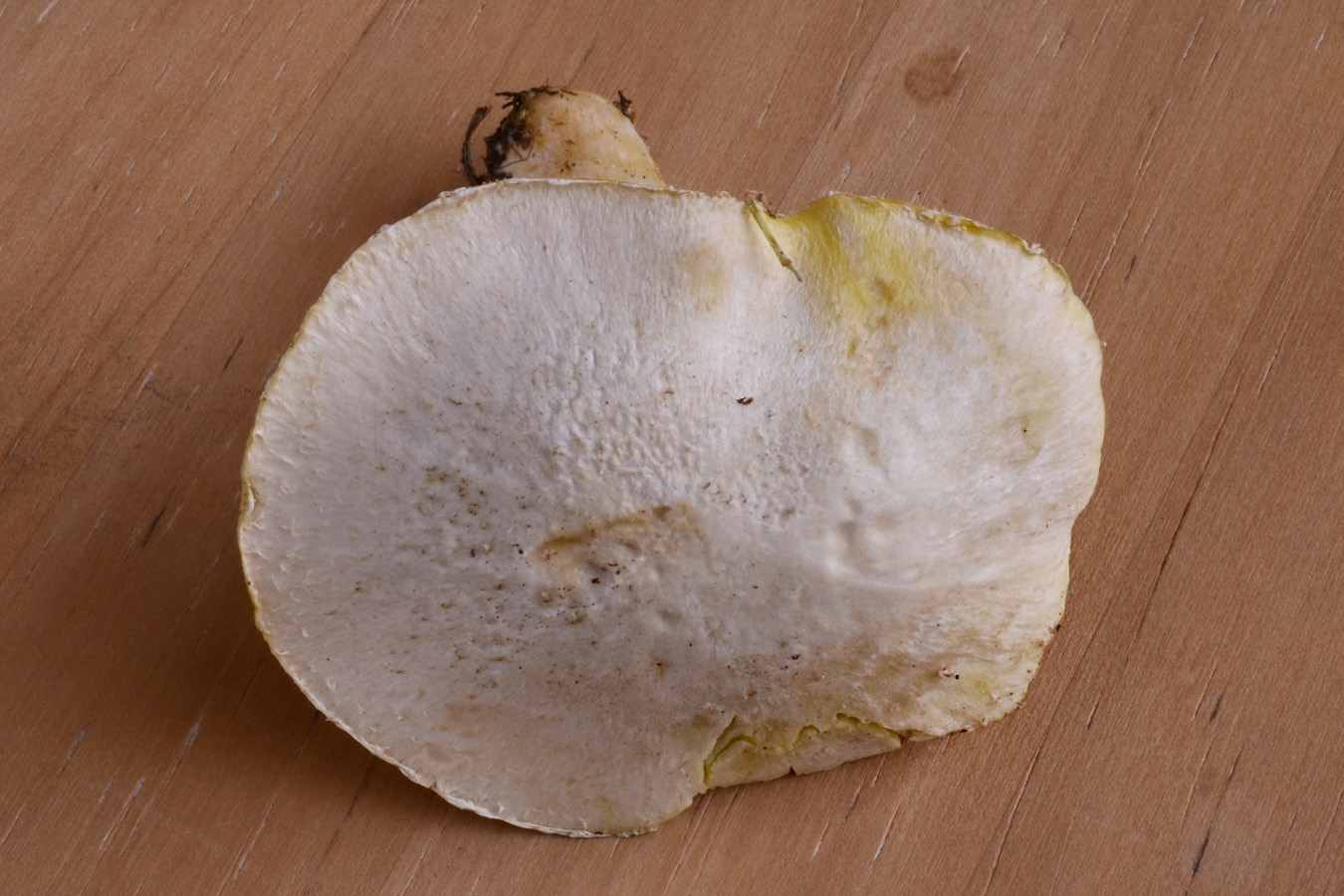 Auffällig ist hier das starke Gilben, an den Lamellen besonders stark erkennbar