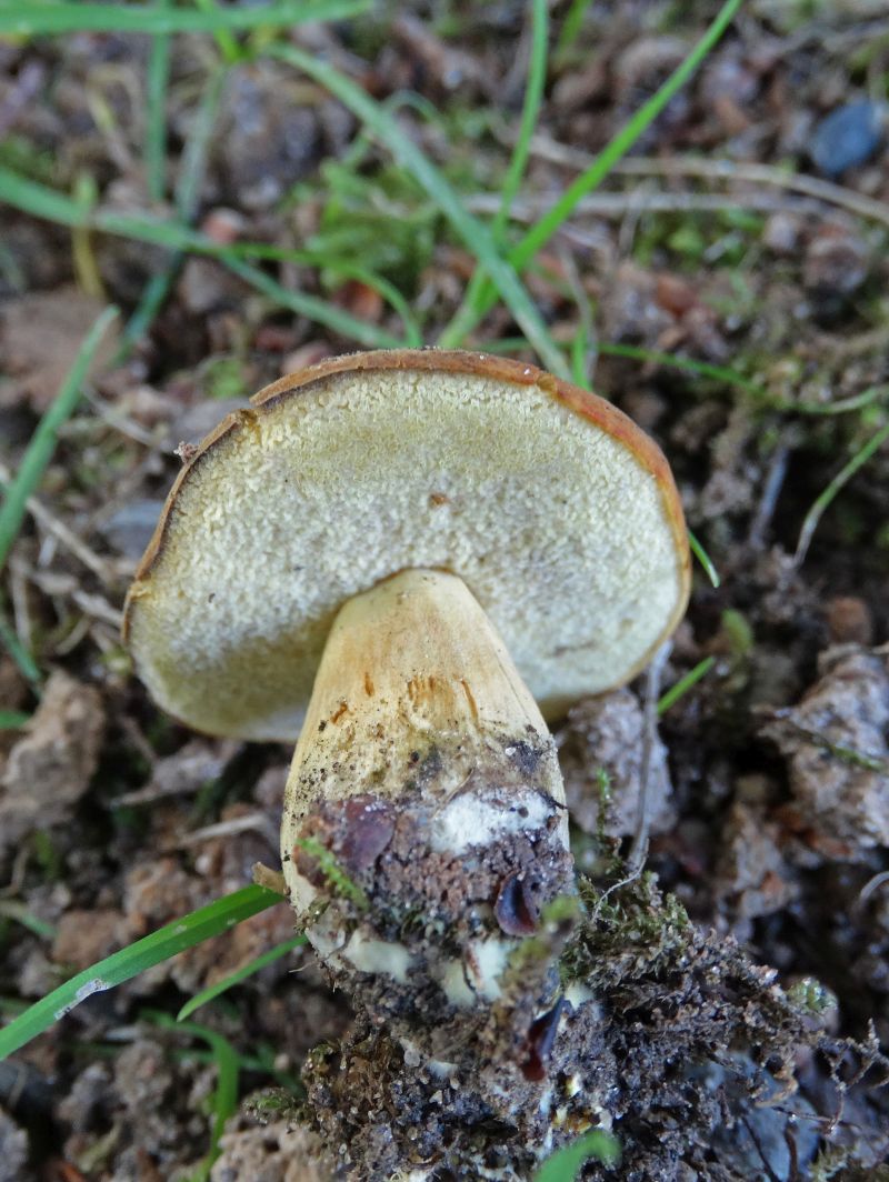 4. Der Röhrling sah so aus, also wäre er schon am Ufer, aber zuhause haben wir gesehen, dass er ziemlich gelb war, unter dem Hut und am Stiel. Was könnte das sein? Auch ein Steinpilz, aber welcher?
