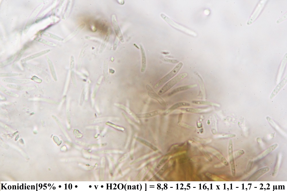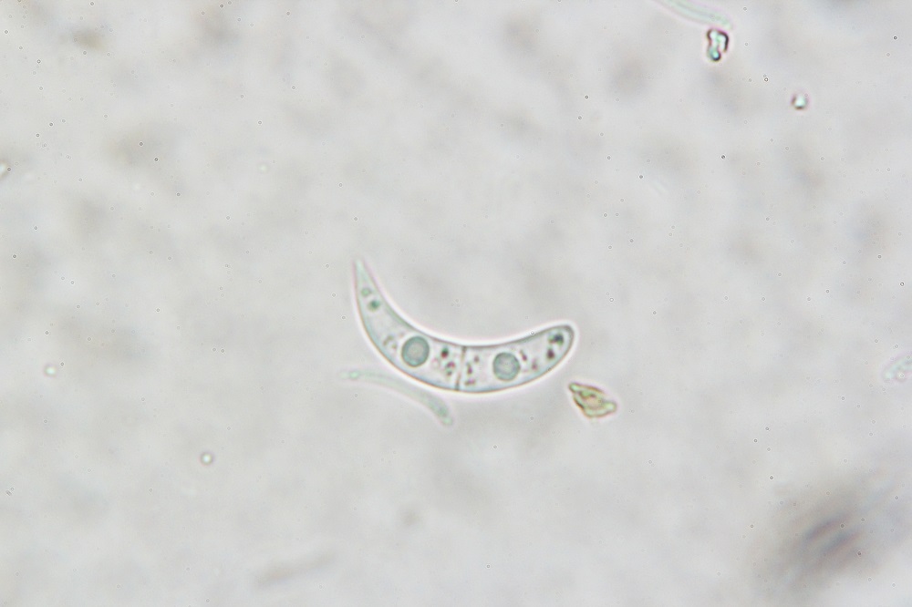 Die Konidien sind unreif ohne einfacher Septierung, kleiner und nicht so stark gebogen wie die Reife Form.